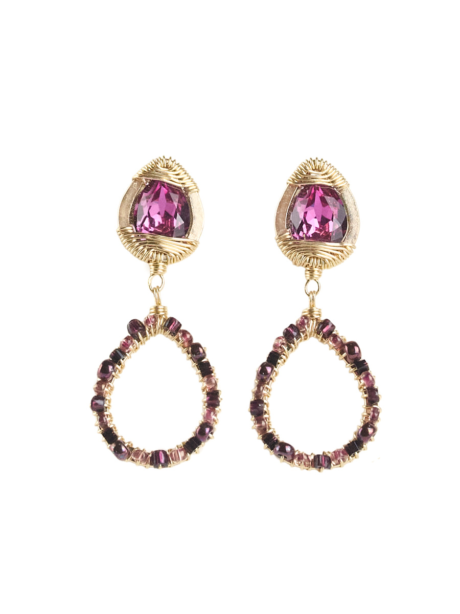 A pair of gold-wired teardrop-shaped faceted purple quartzes