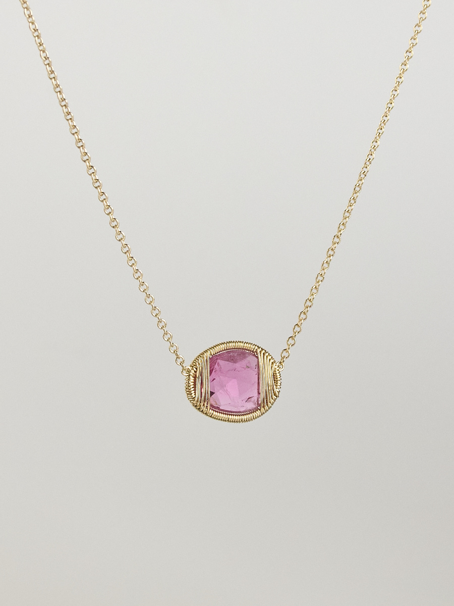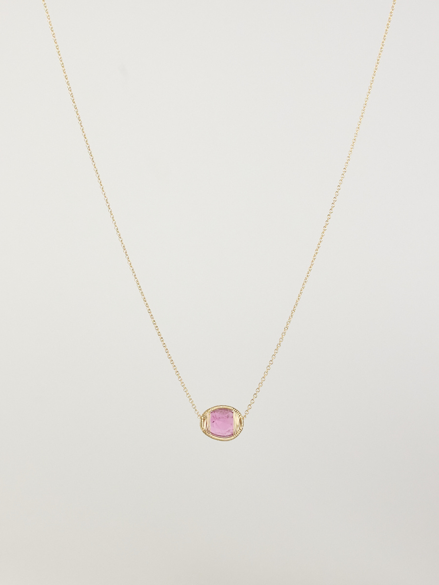 Gold wire-wrapped blue sapphire pendant necklace