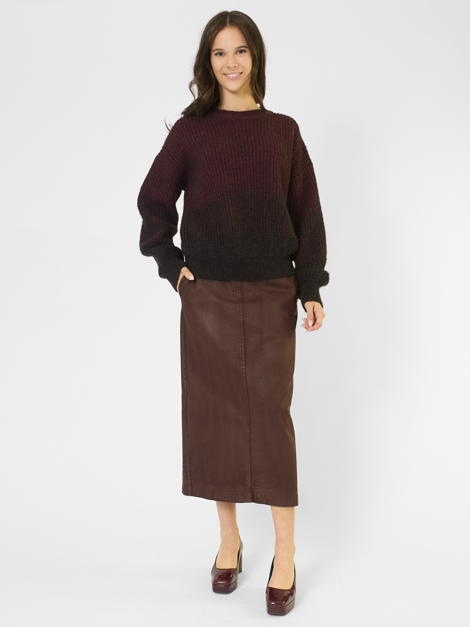 Superfine alpaca and wool blend pullover has a soft two-tone gradient