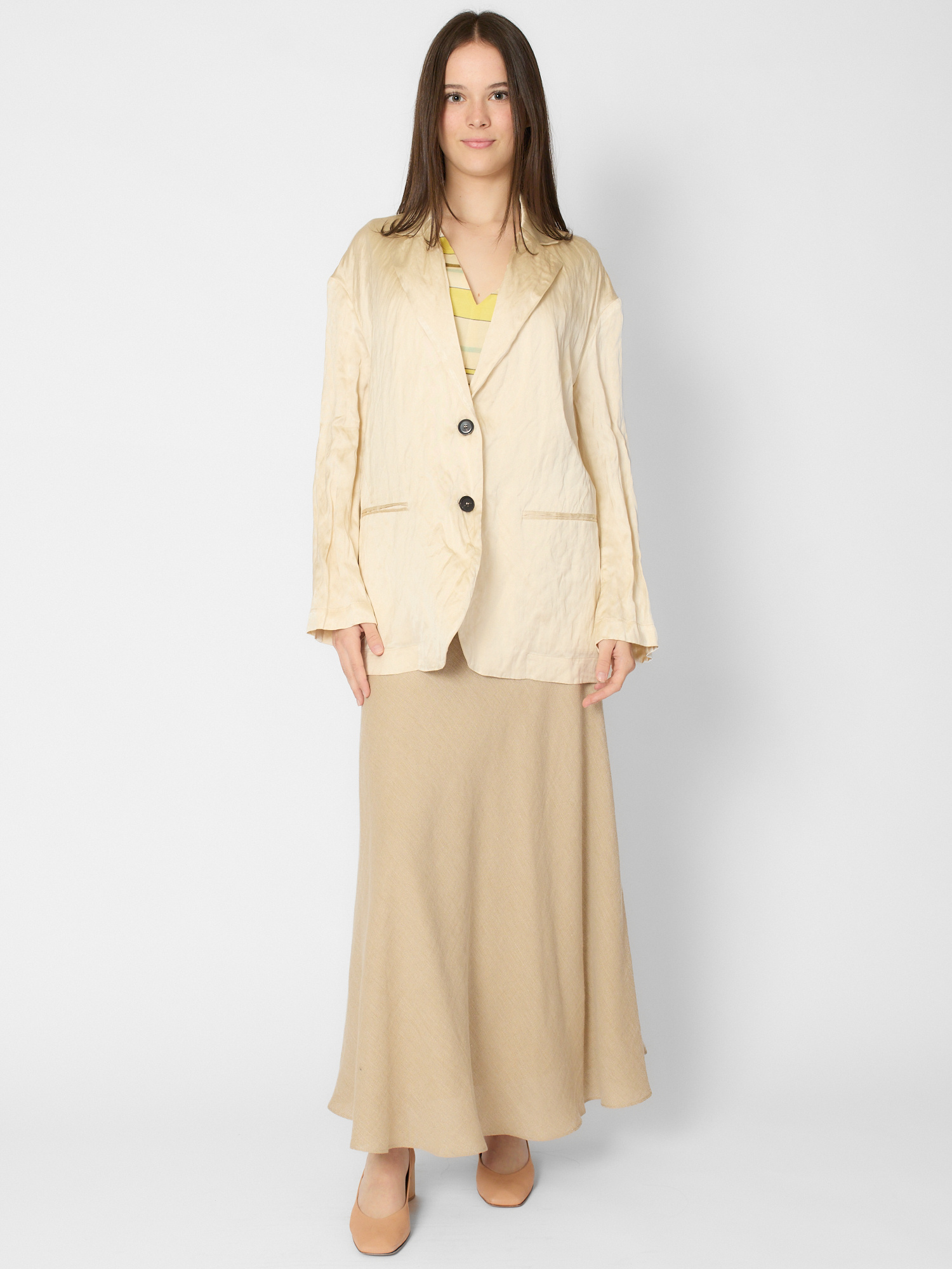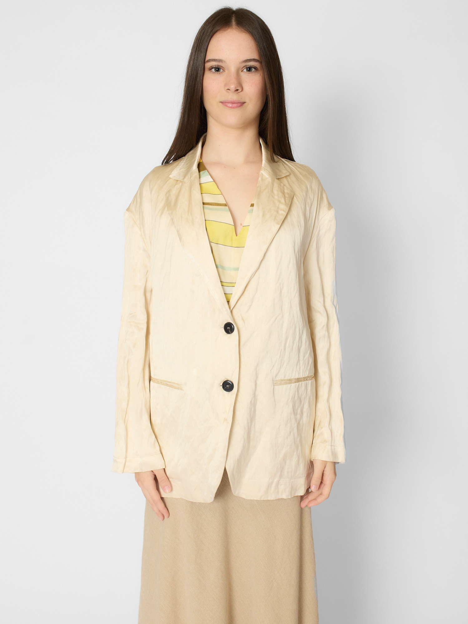 Crinkled Viscose Satin Jacket Chalk