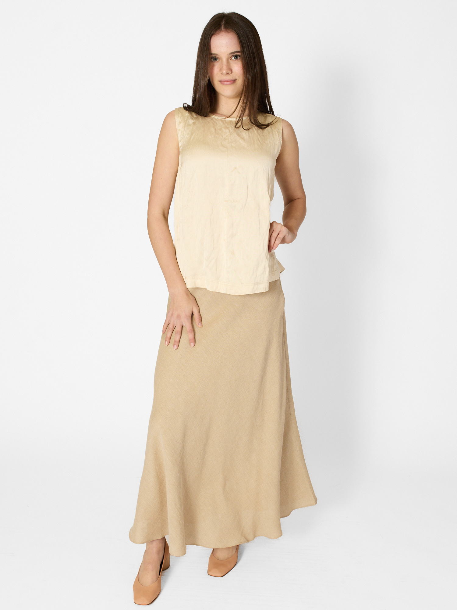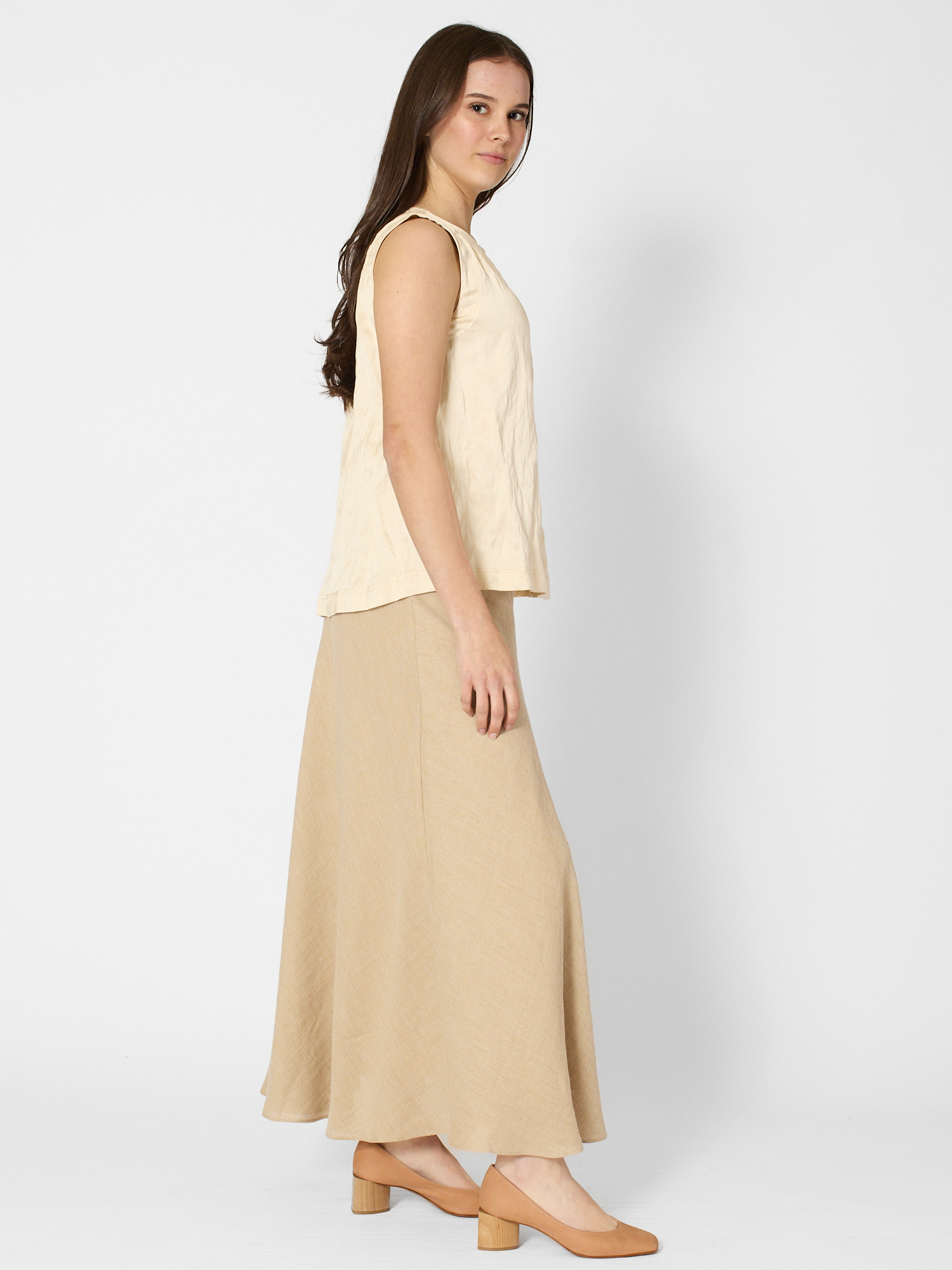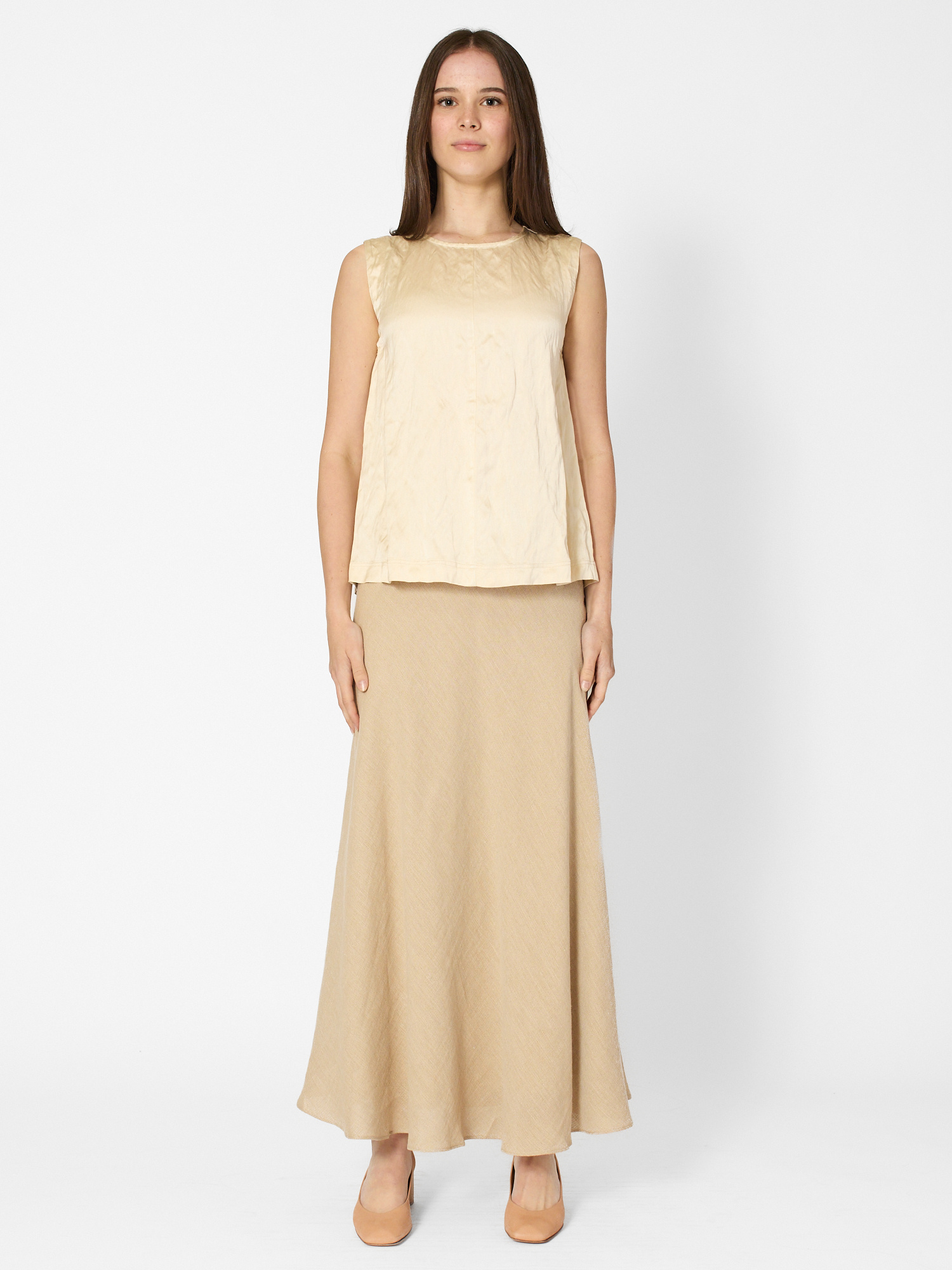 Crinkle top features a sleeveless and oversized fit