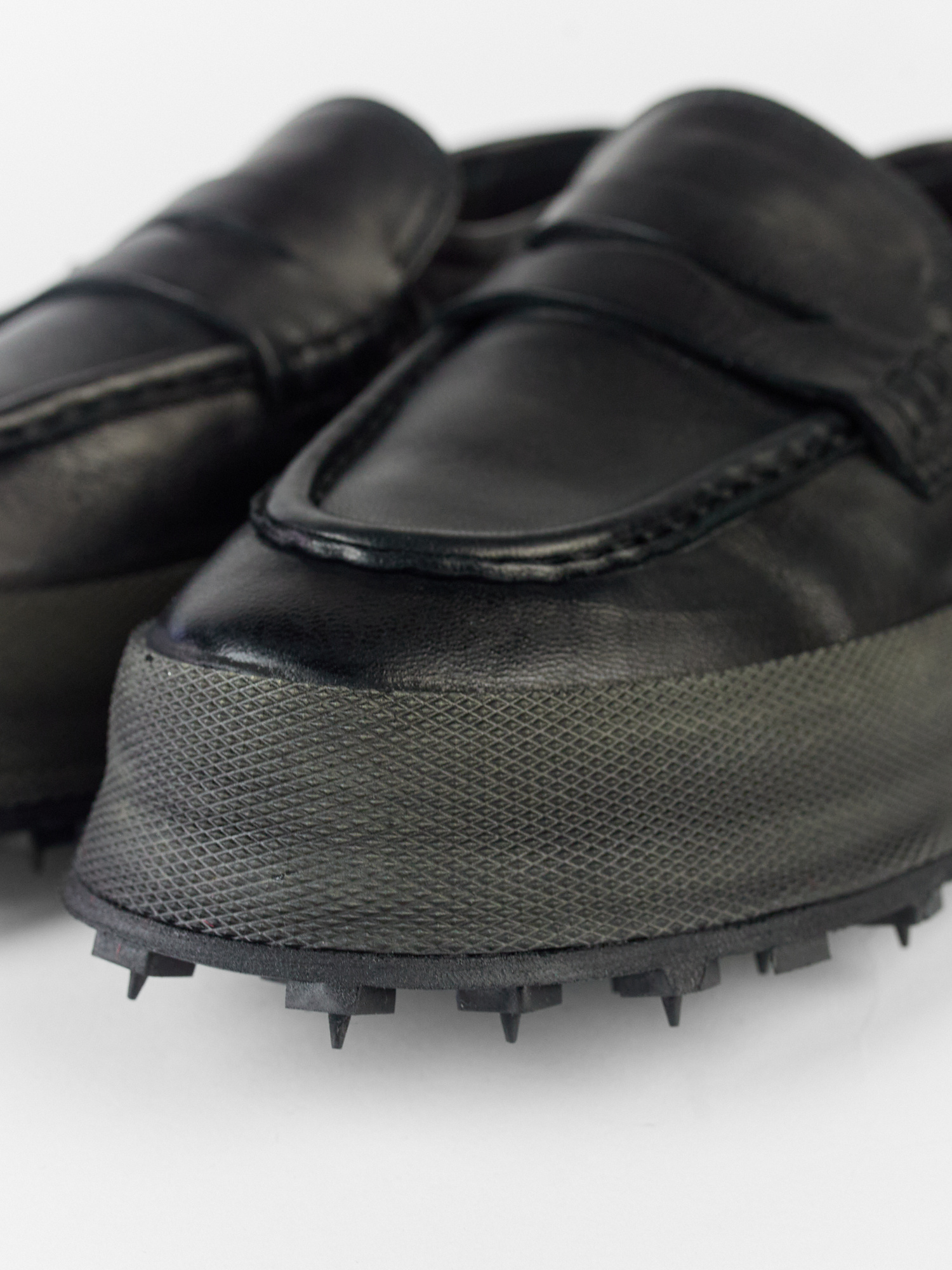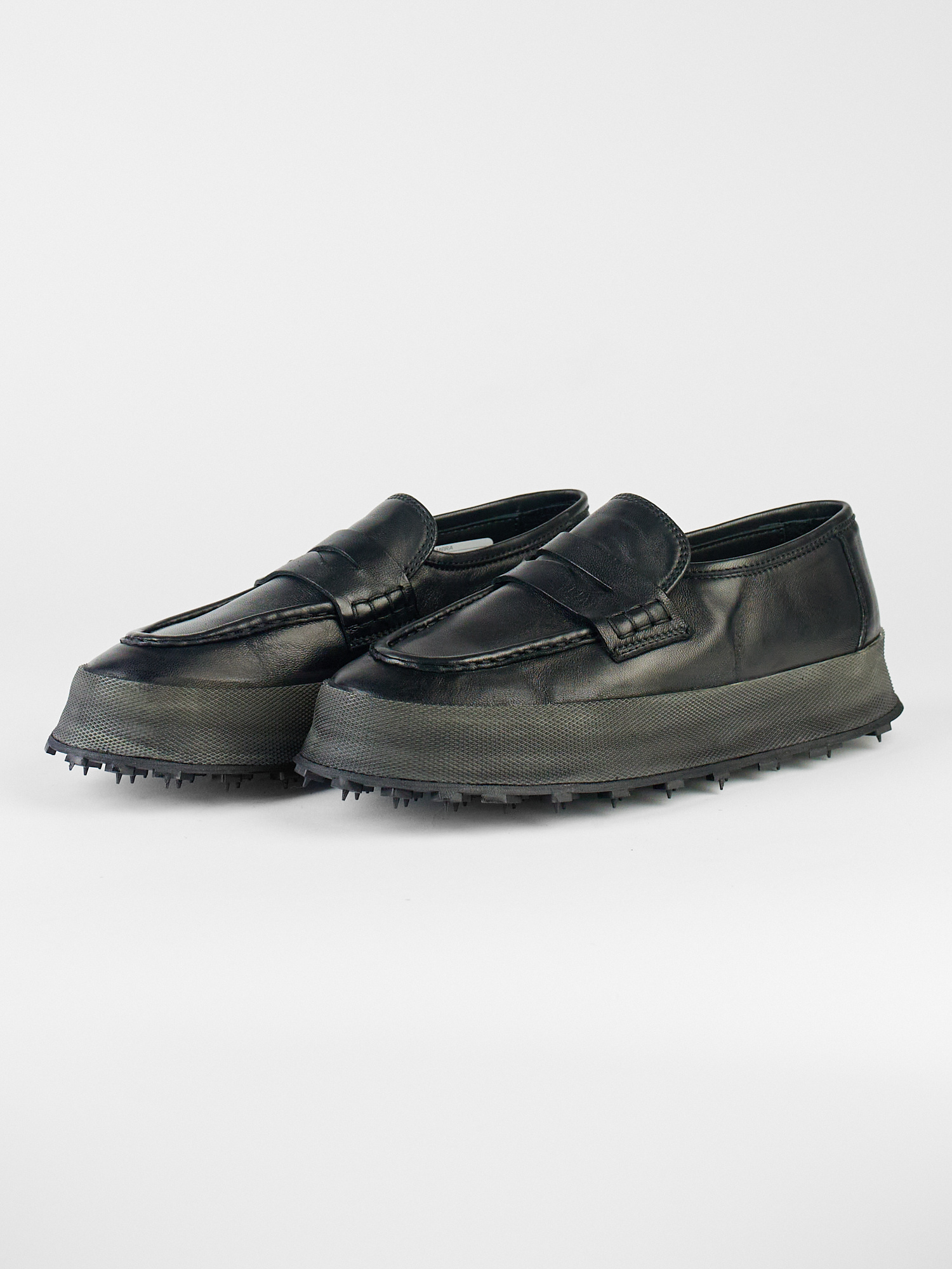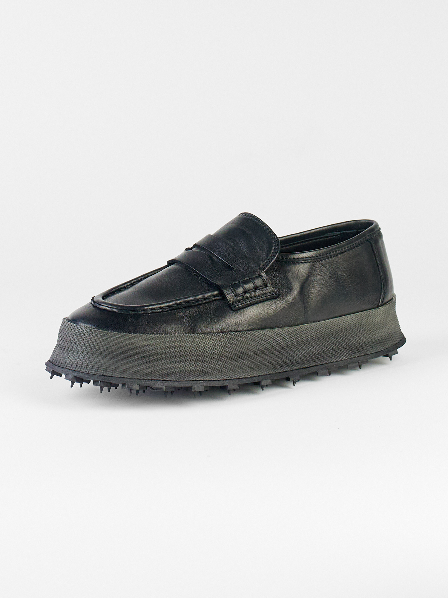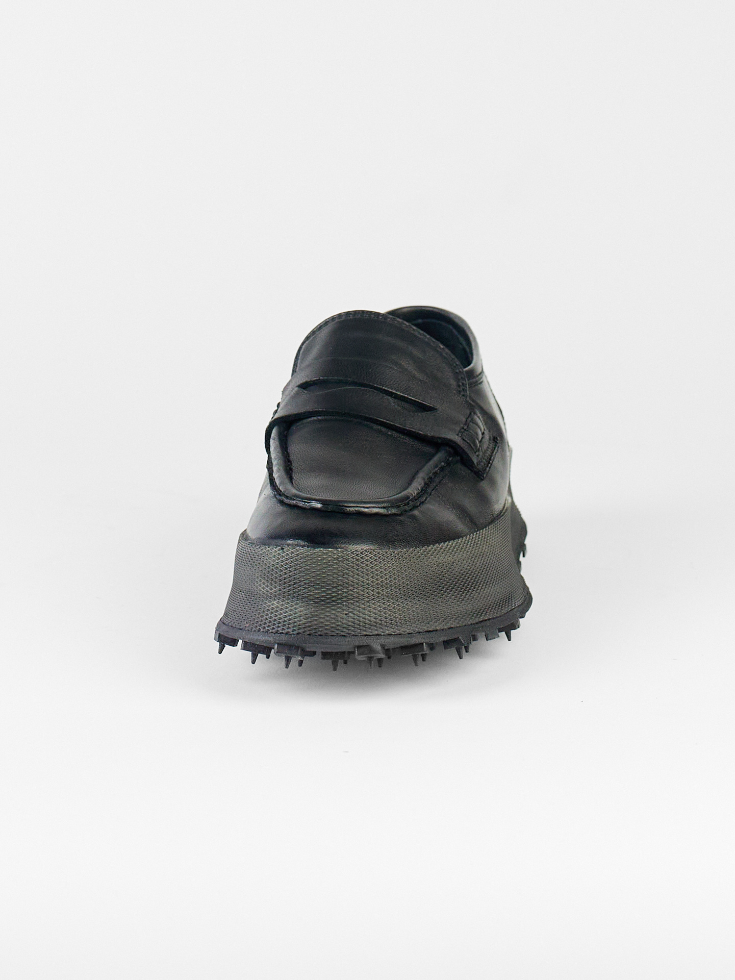 Hand-crafted leather loafer with black rubber sole, leather lining, and insole