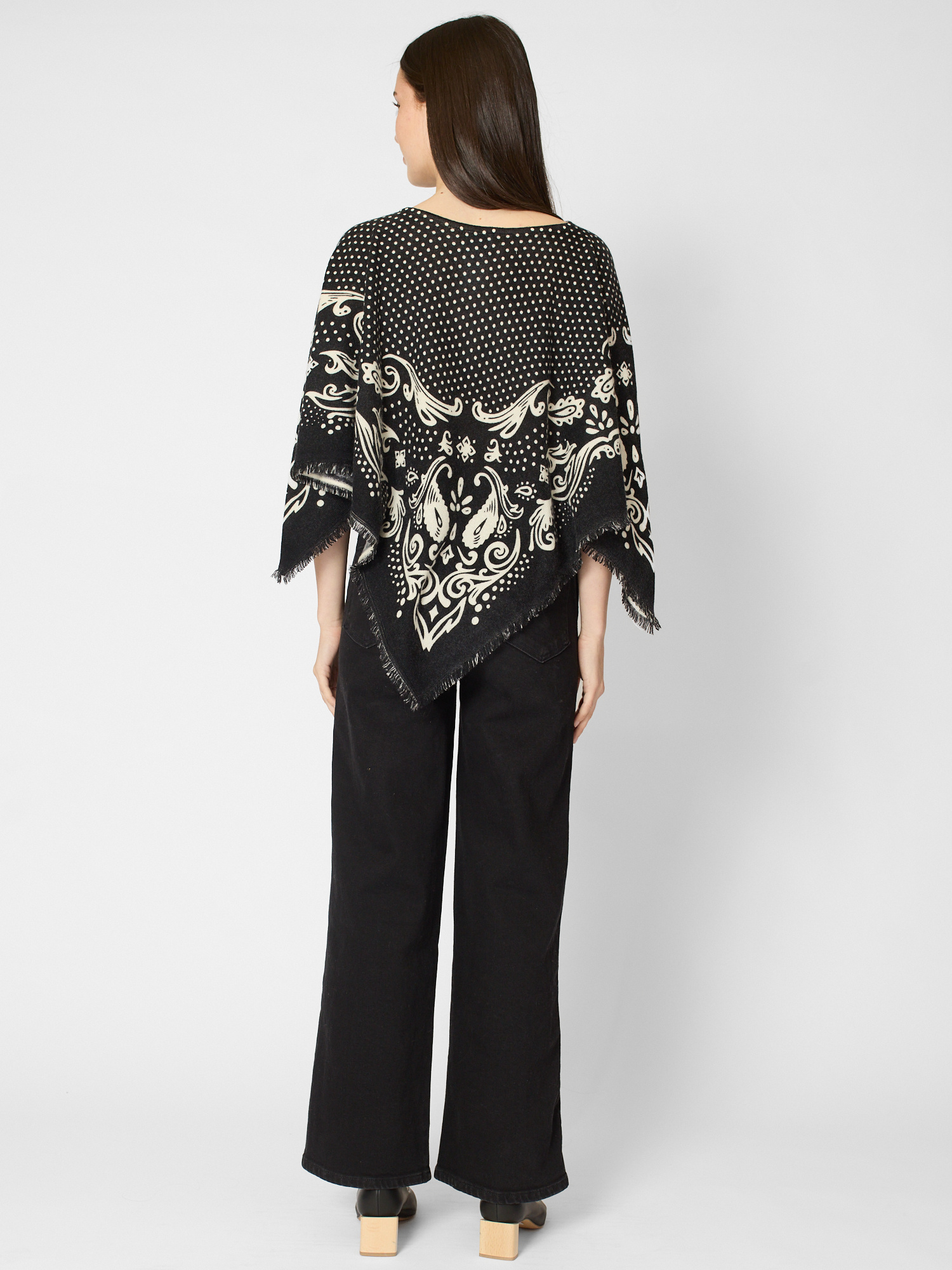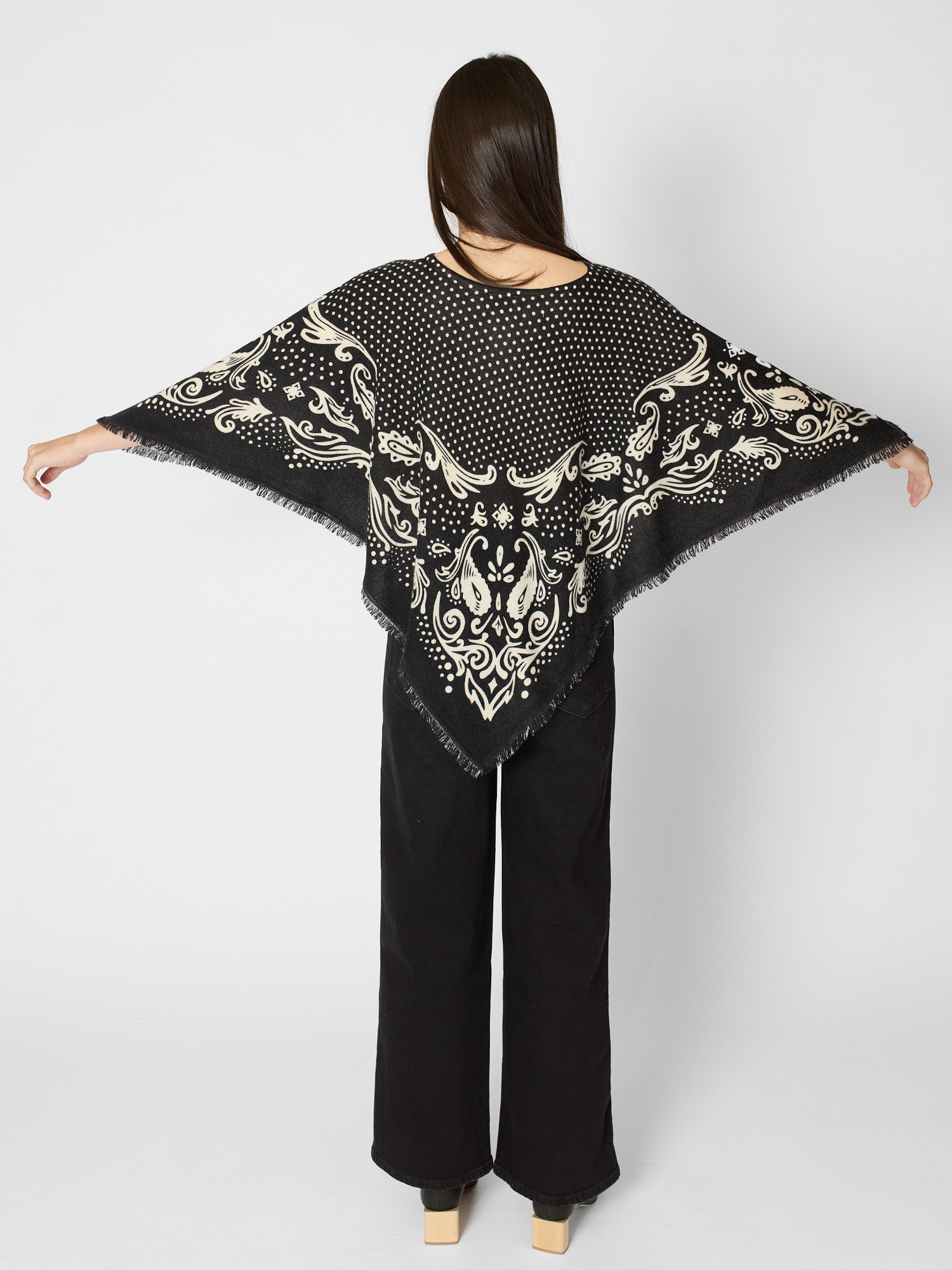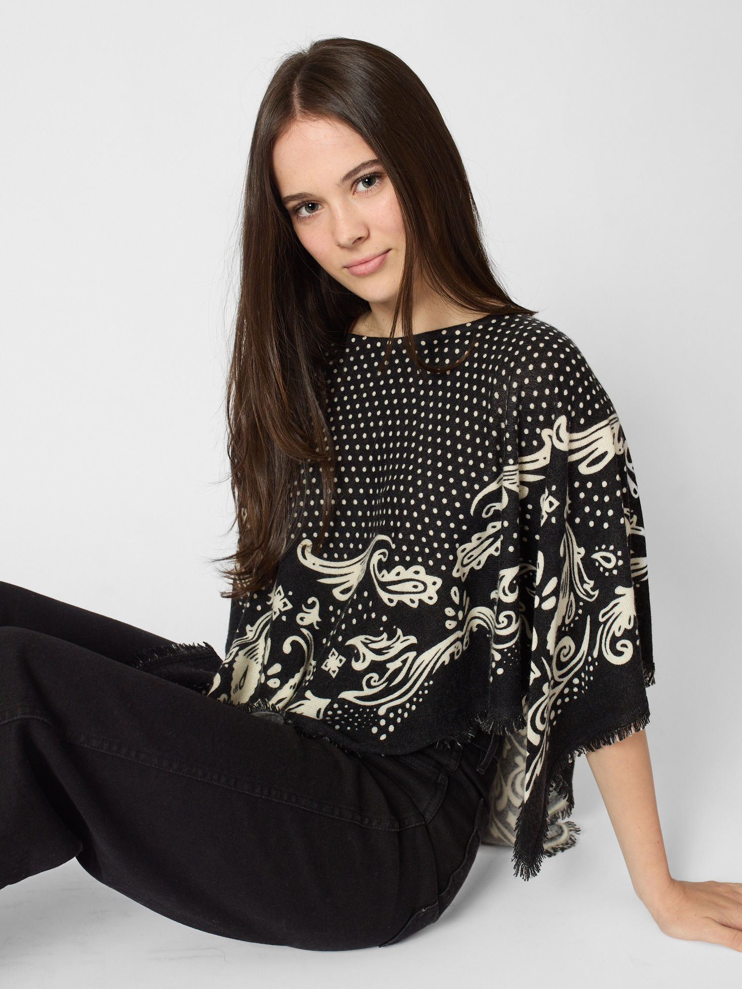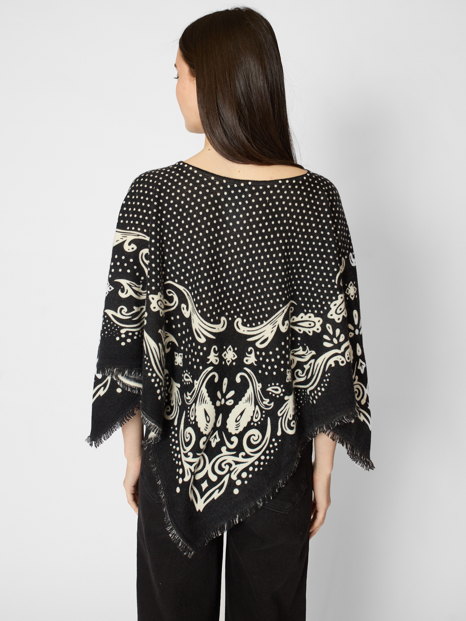 Cashmere polka dot pancho with fringes