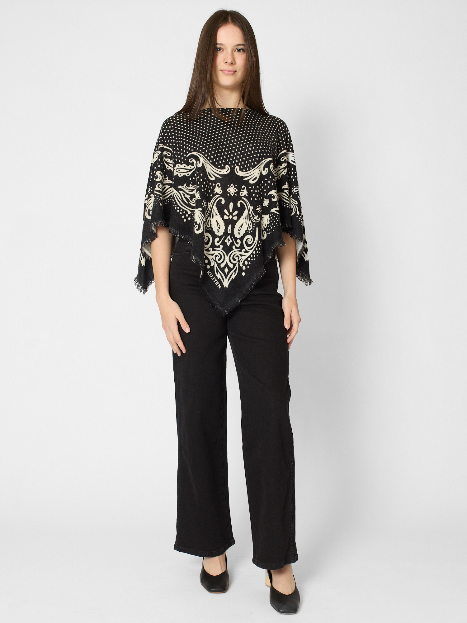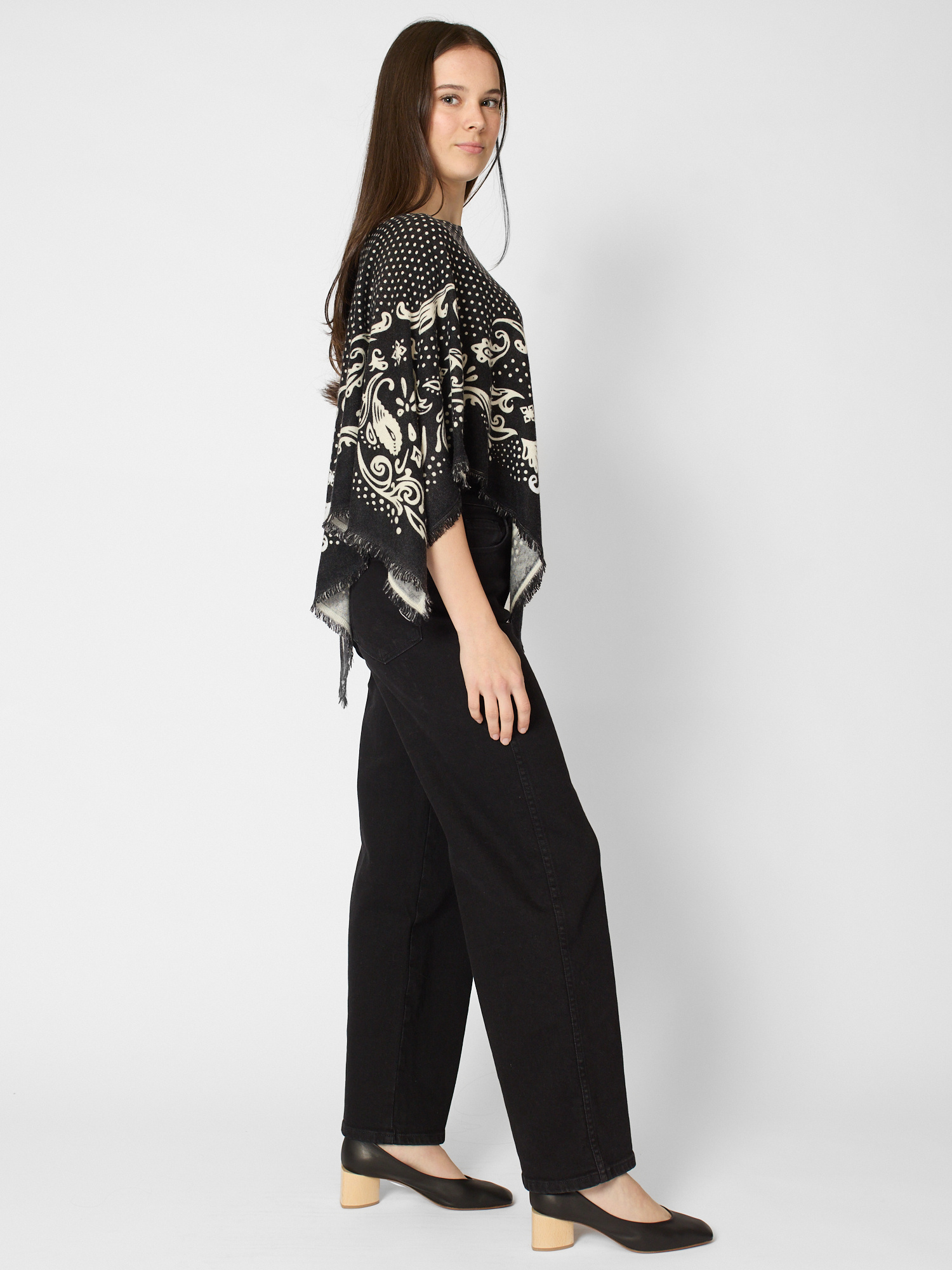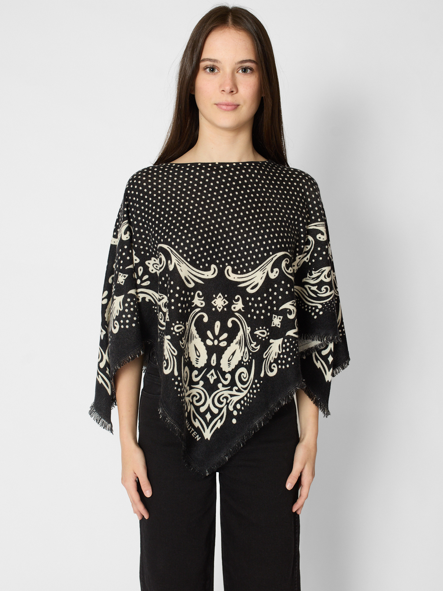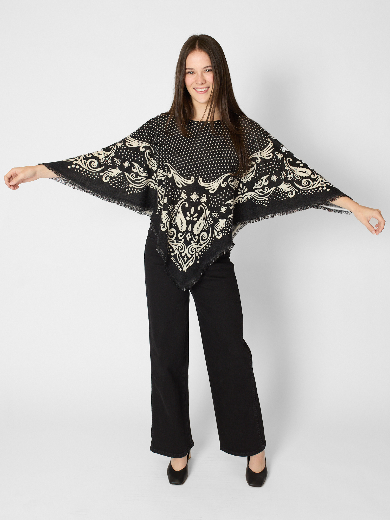Cashmere polka dot pancho with fringes