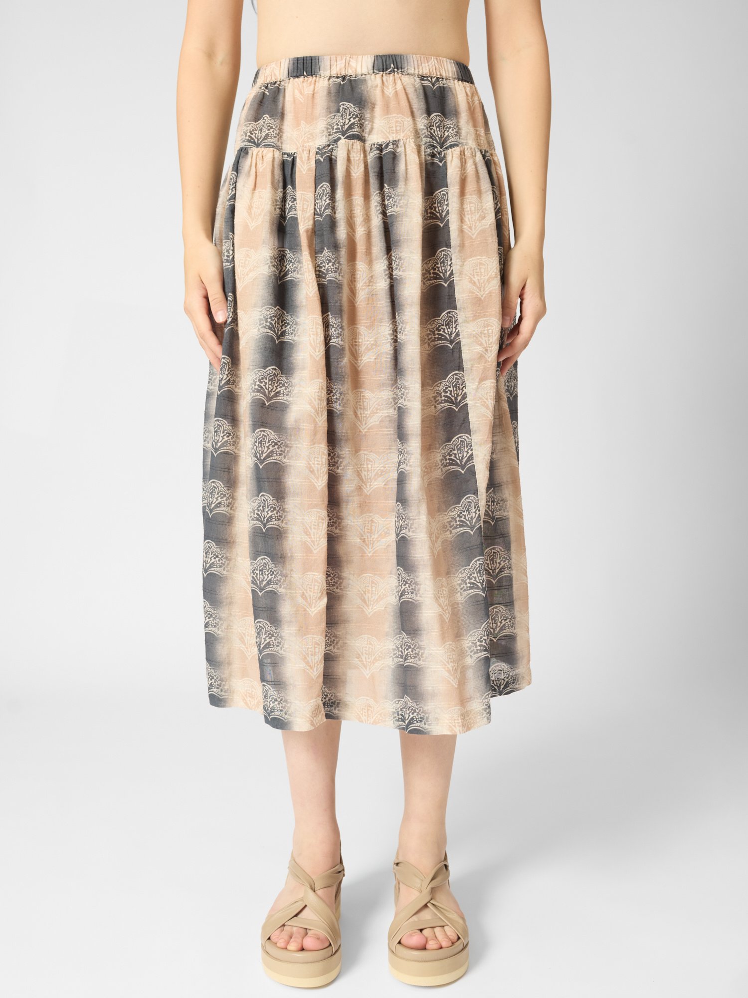 Midi cotton skirt in Khadi Cotton with two side pockets and an elasticized waistband with a hidden inner drawstring.