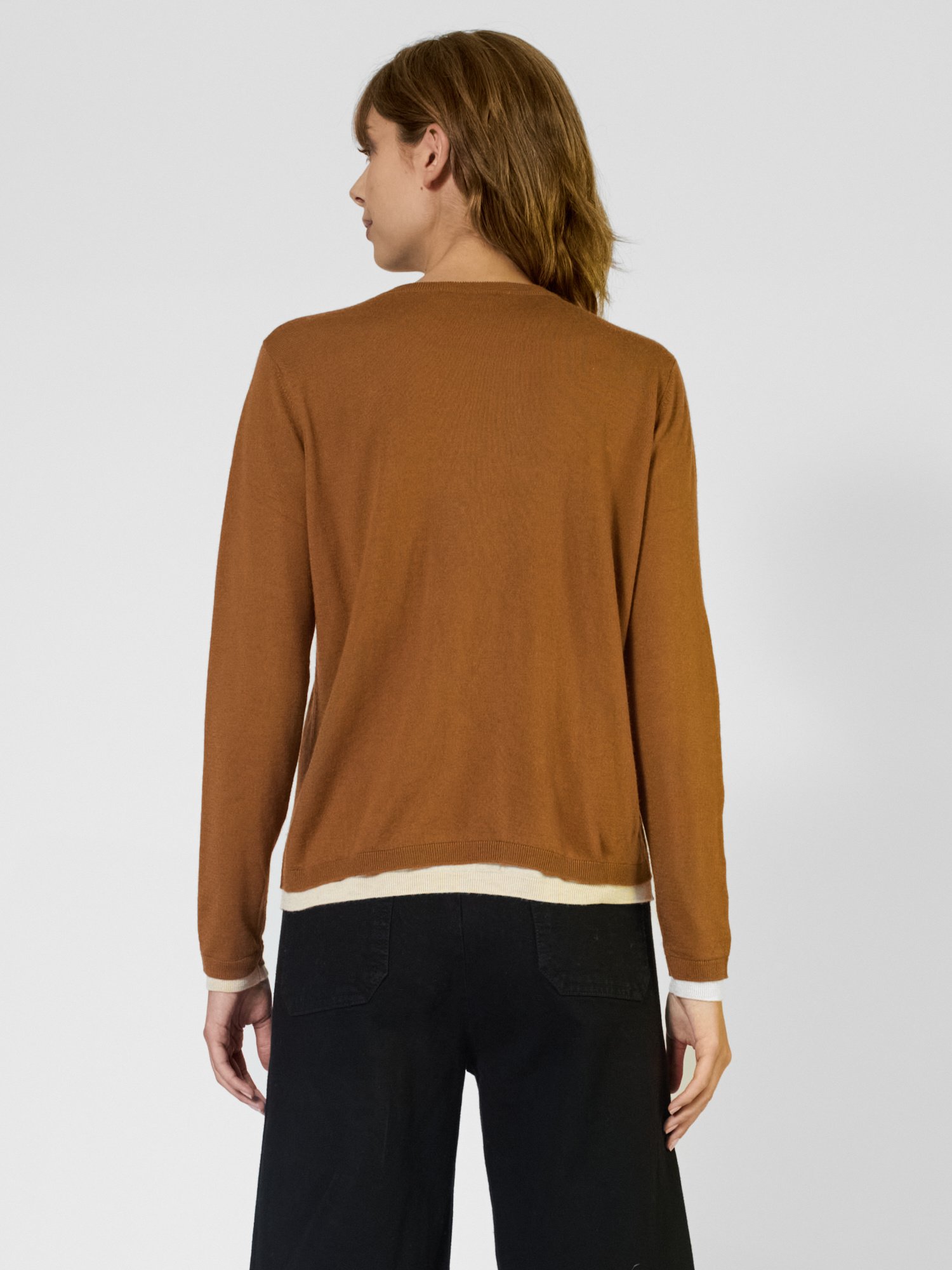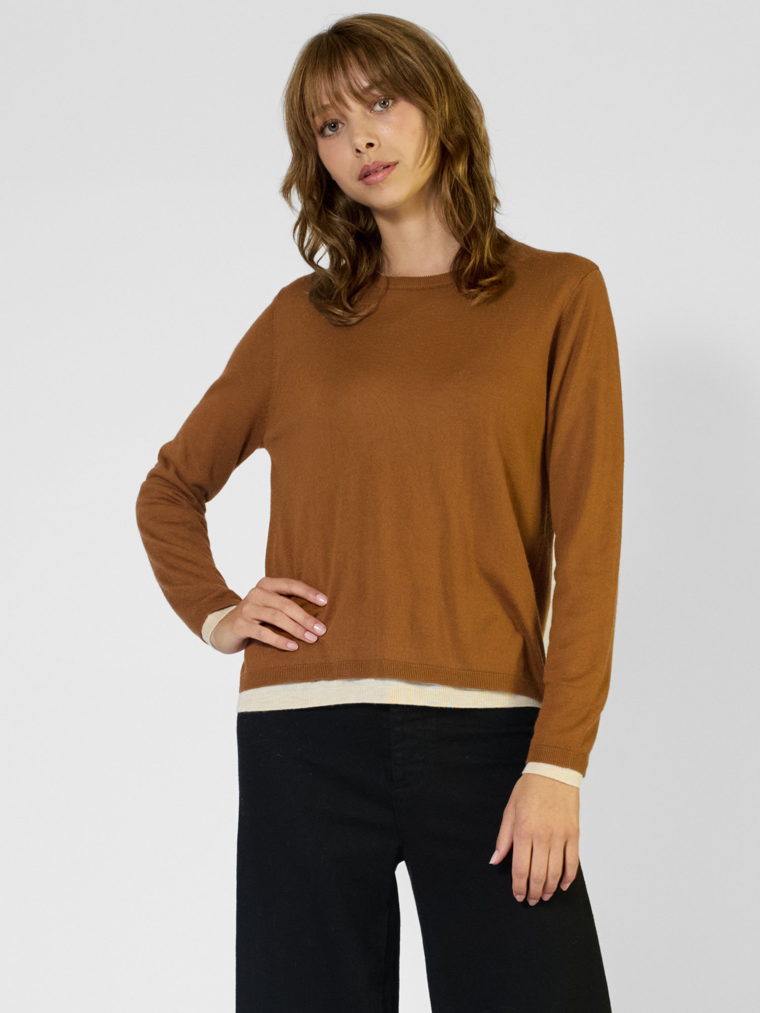 Slightly loose crew neck pullover in a bamboo cashmere blend.