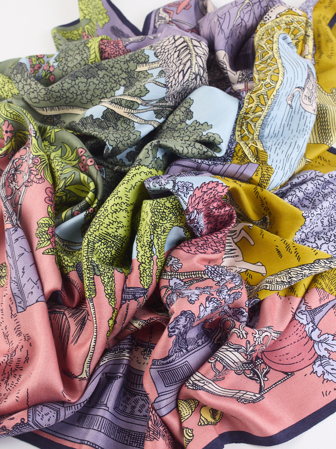 Silk and Modal Square Scarf with Seasons-inspired design