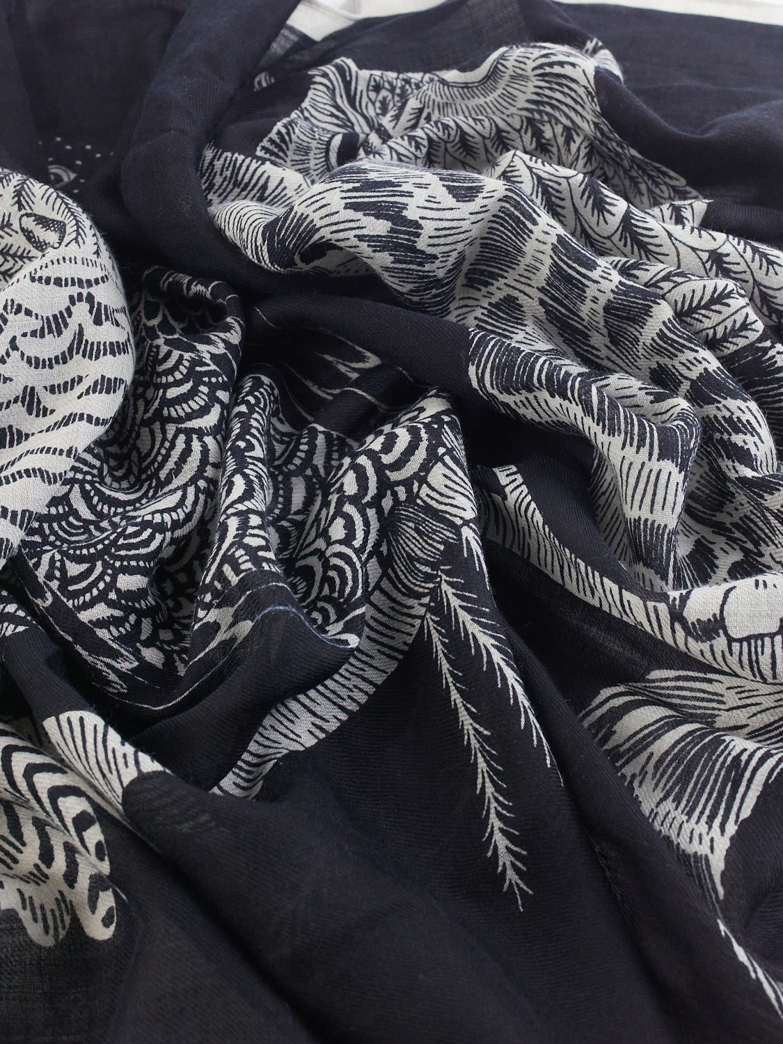 Wool oblong scarf with Birdies design