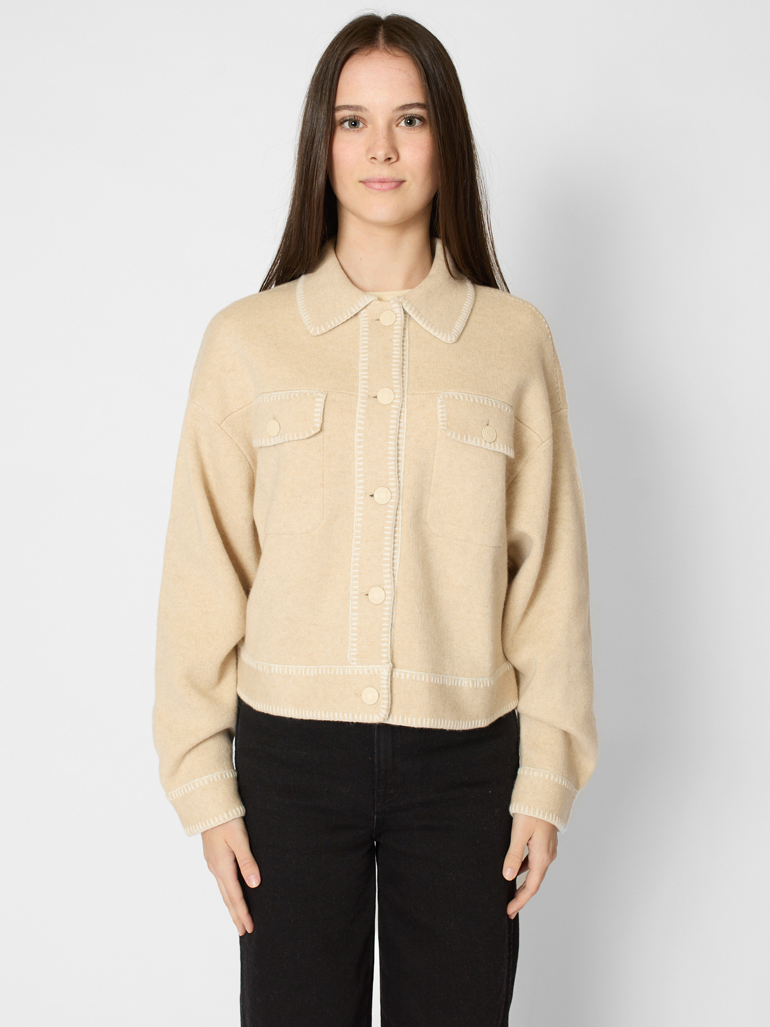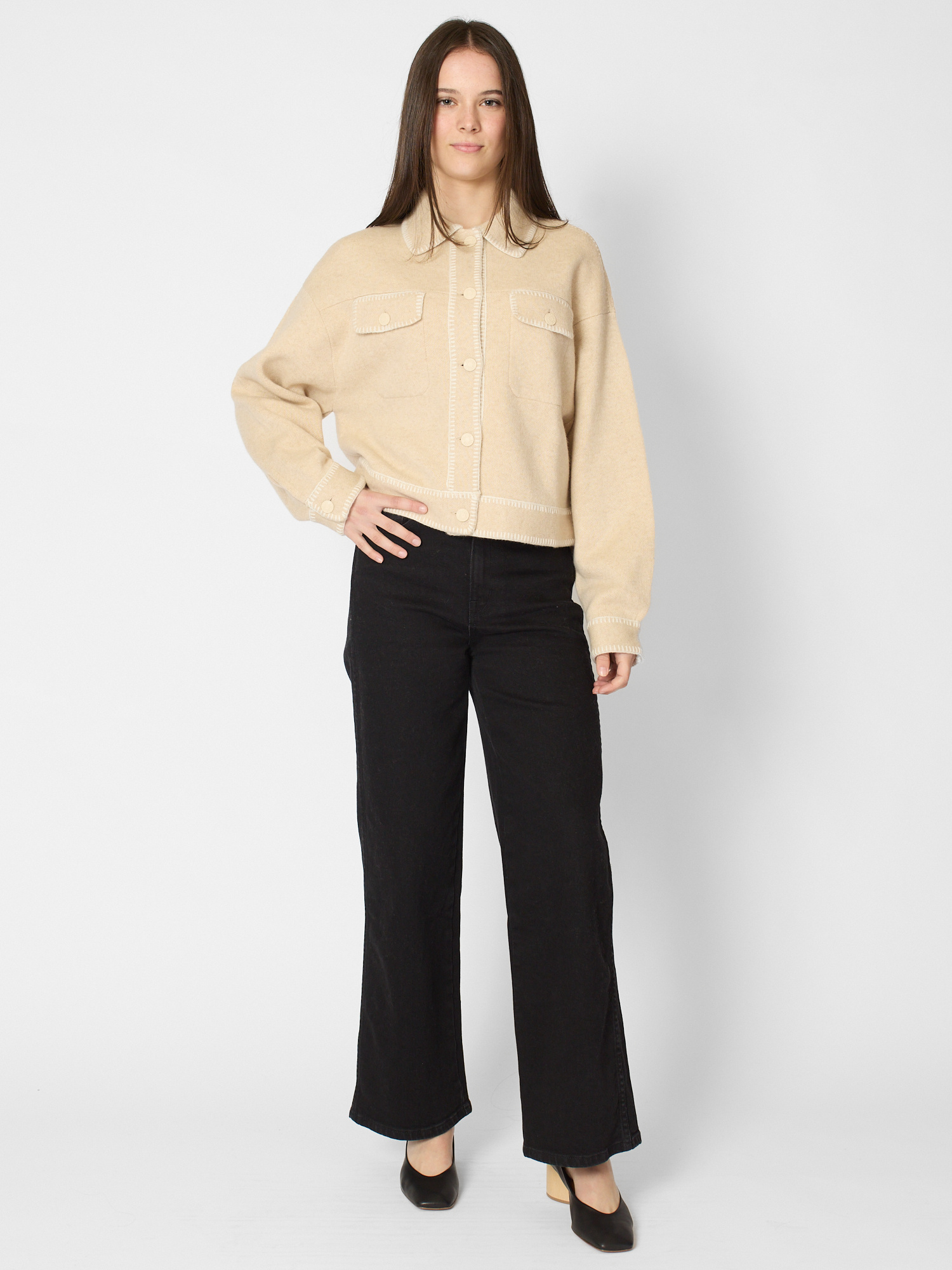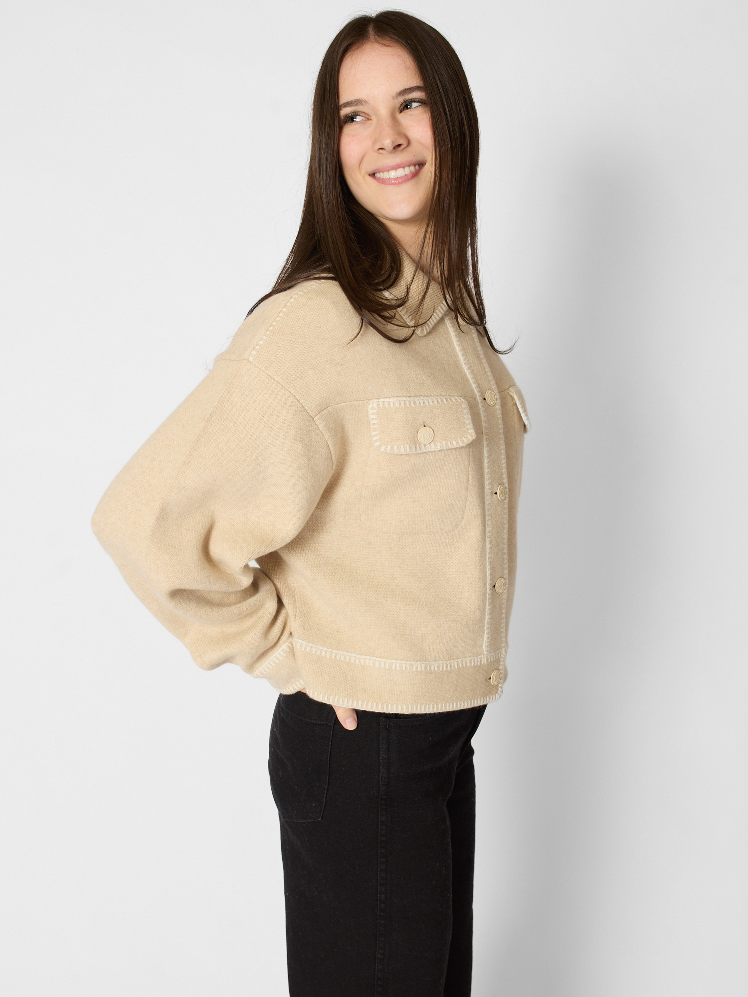 Contrast-stitched organic cashmere jacket fits slightly oversized