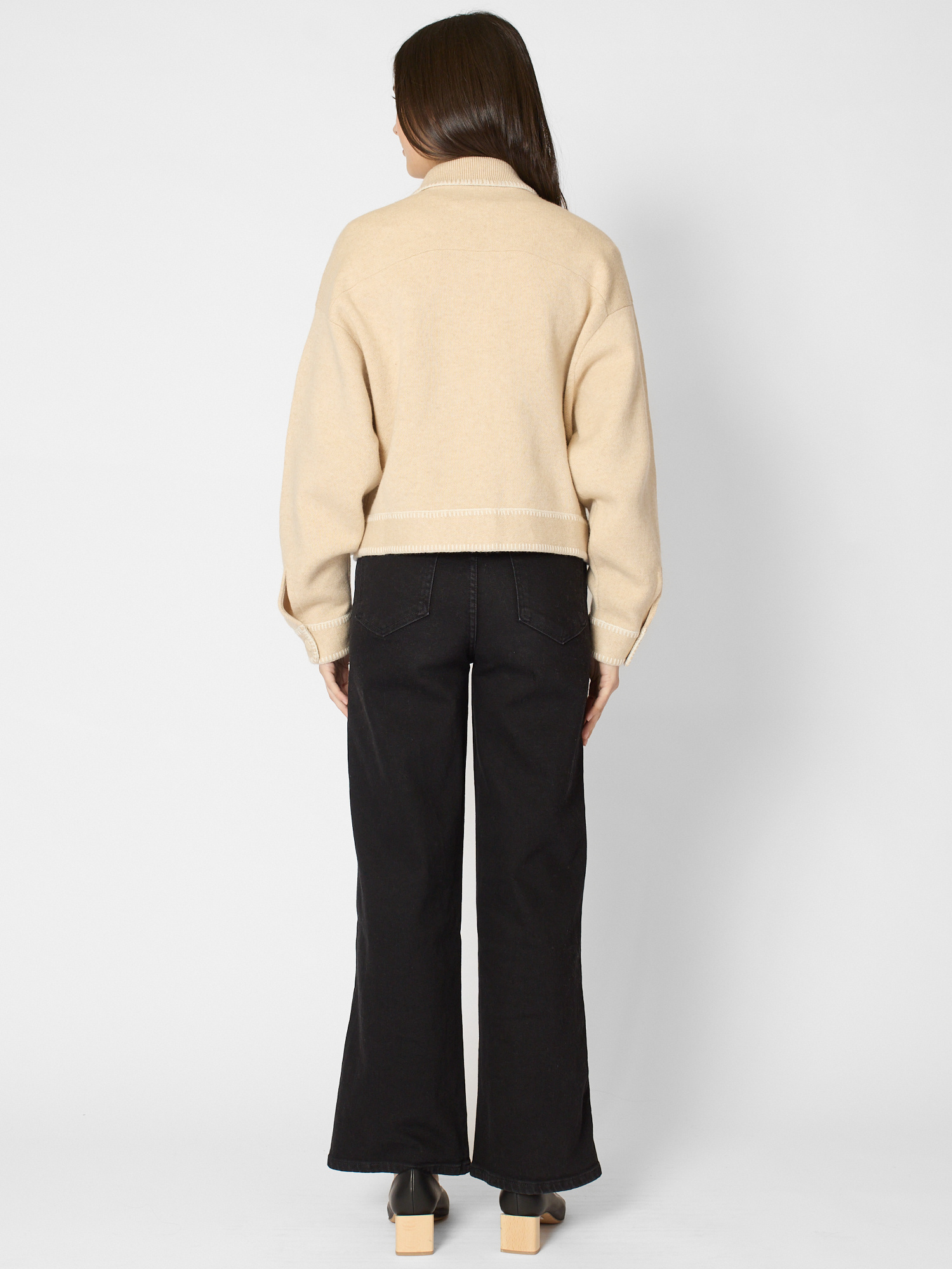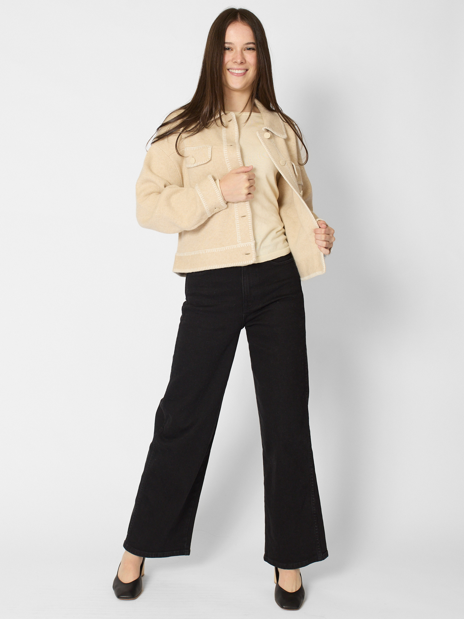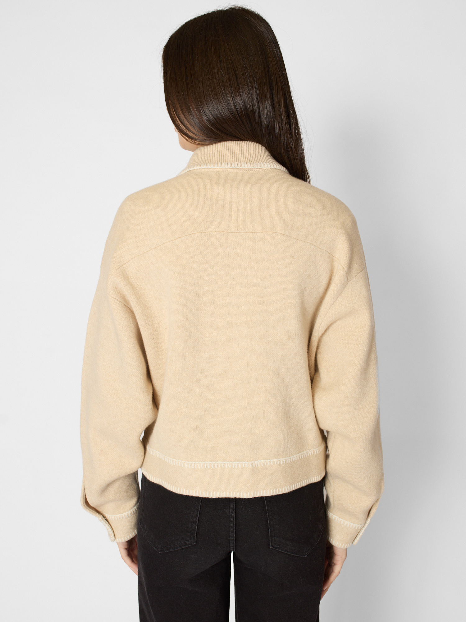 Contrast-stitched organic cashmere jacket fits slightly oversized