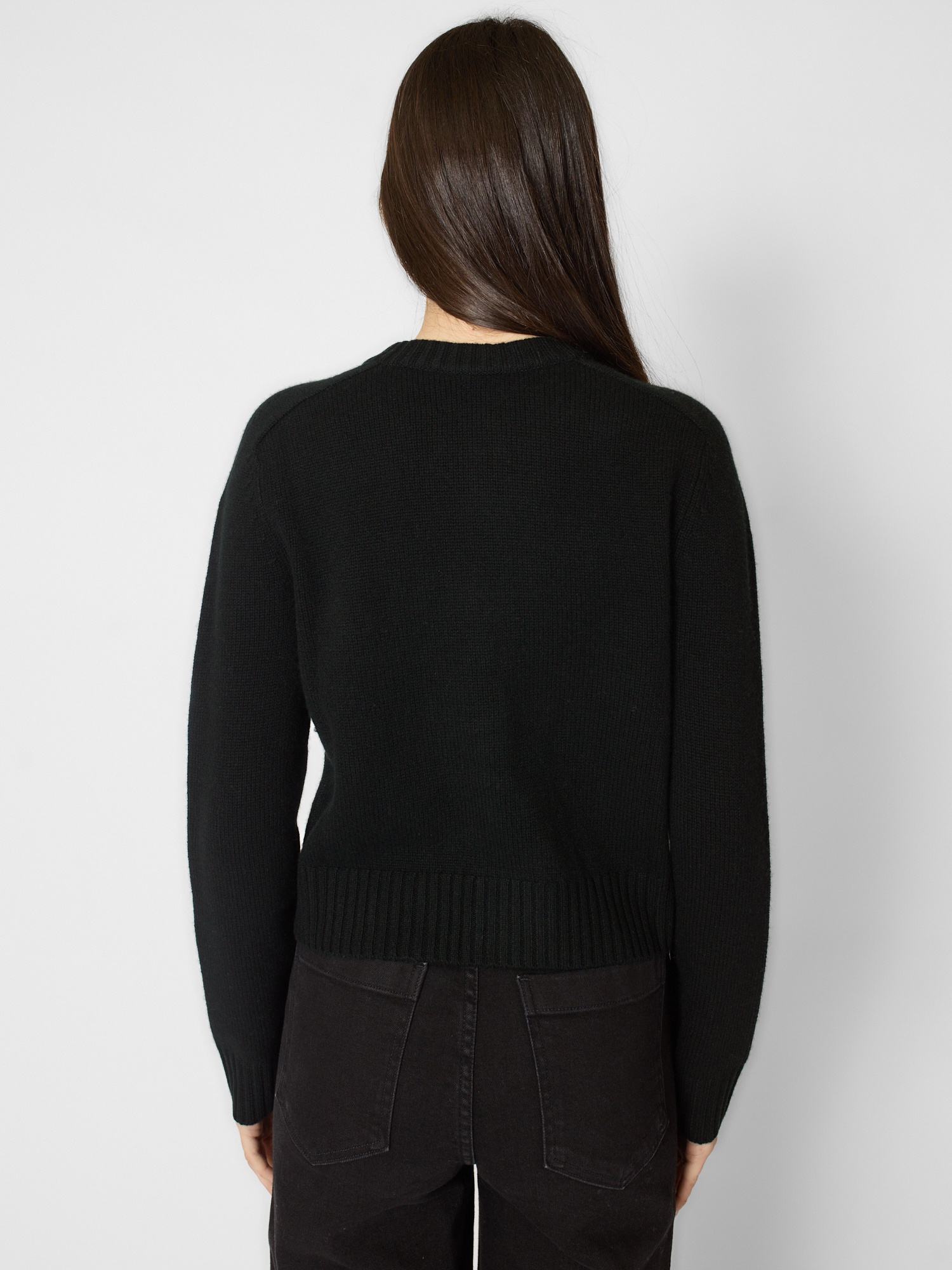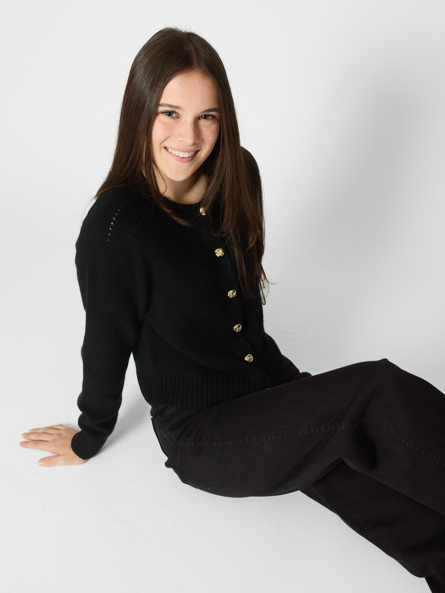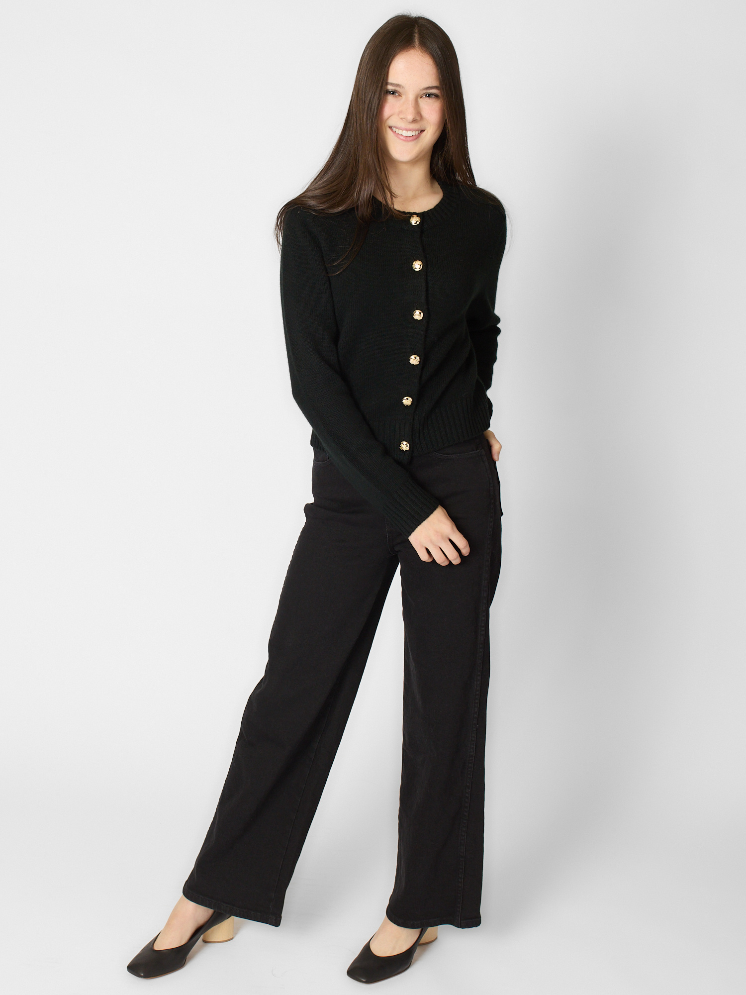 Crew neck cashmere cardigan with gold button closure