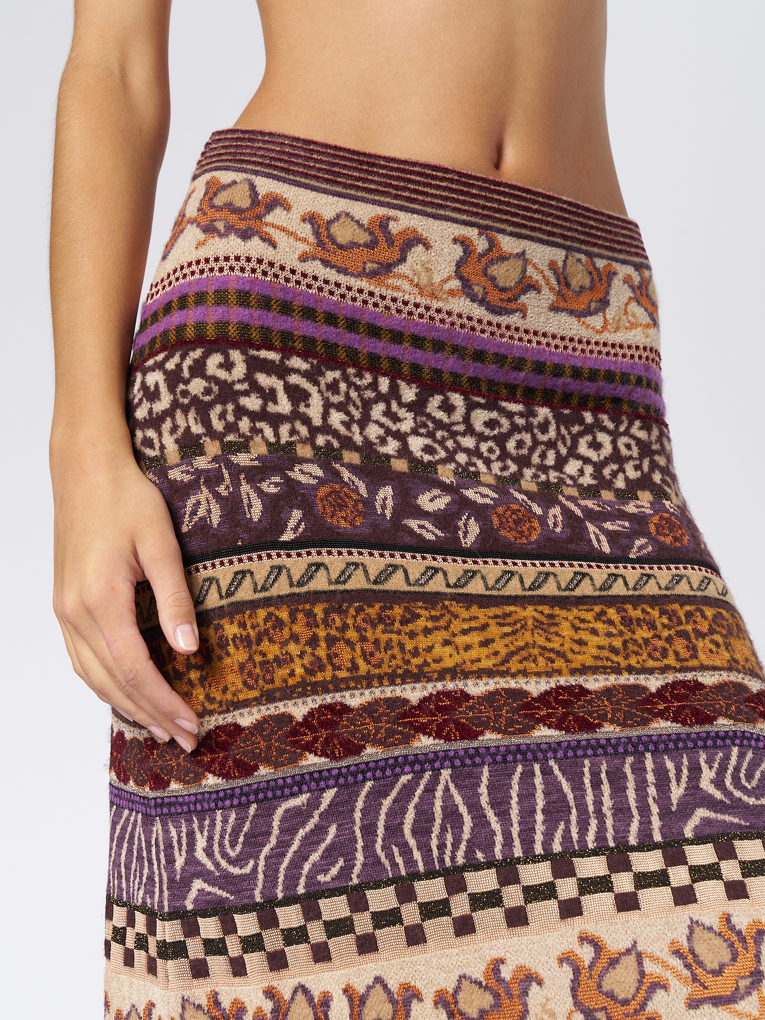 Fair Isle jacquard midi skirt with floral and paisley motifs of wool and alpaca is ribbed at the waist.