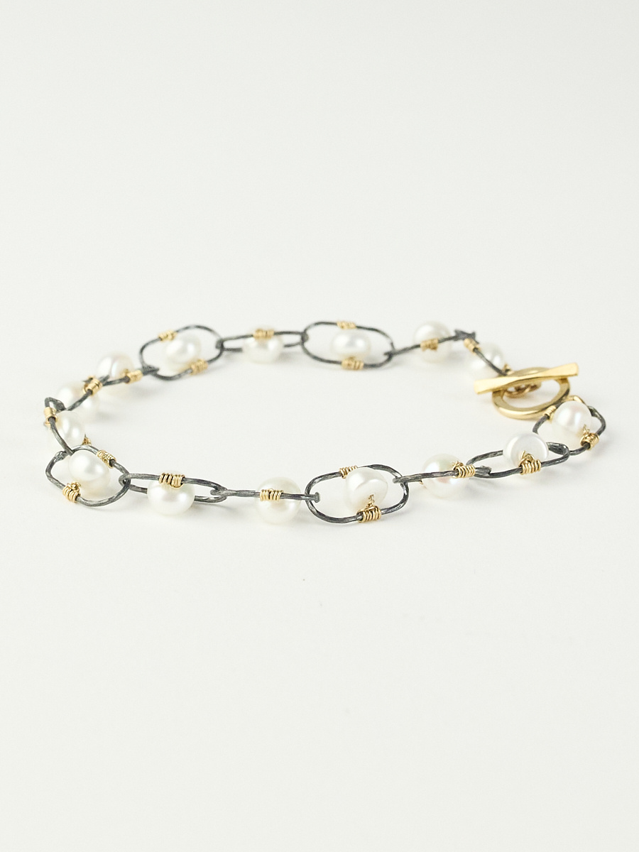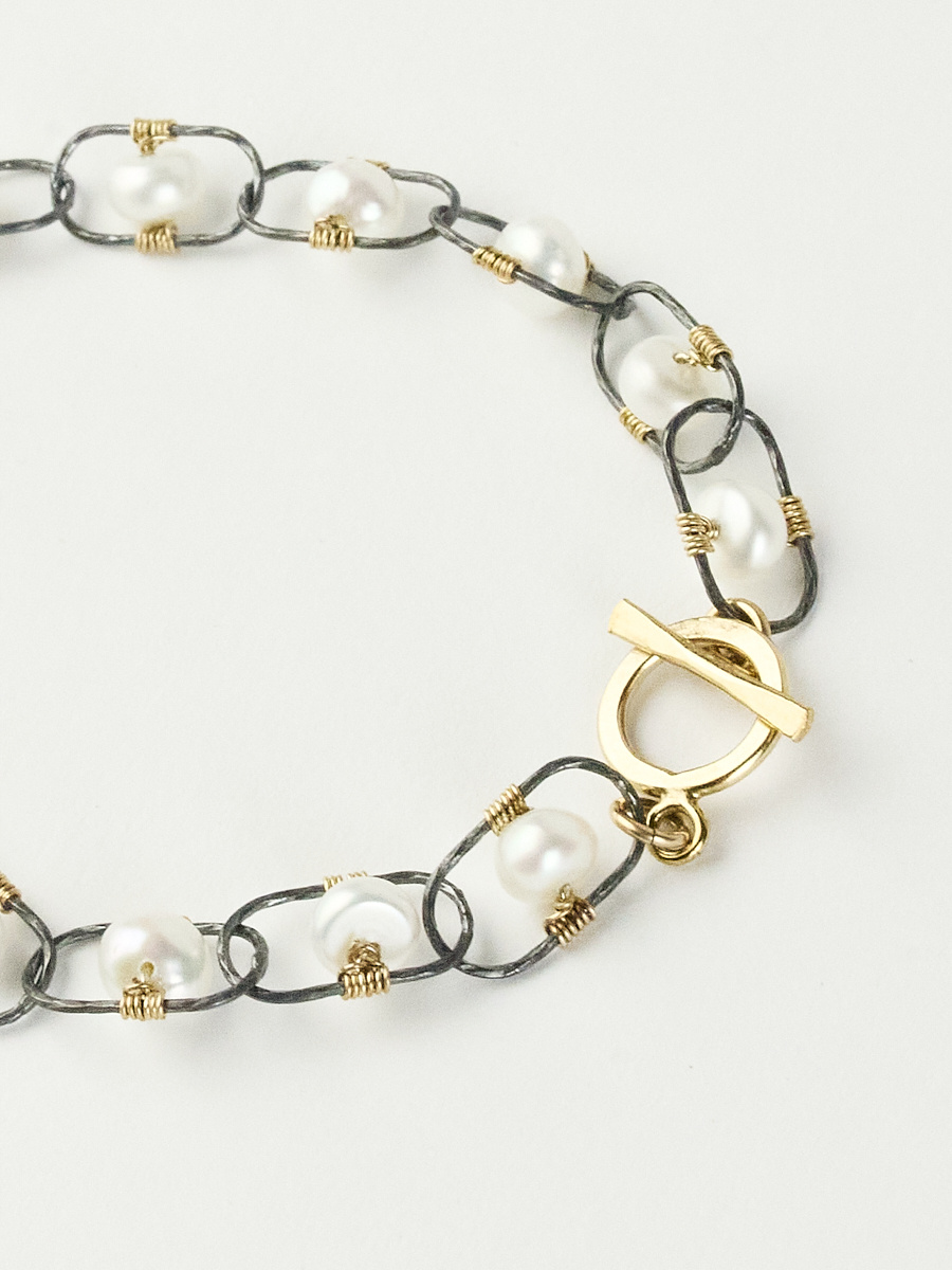 Pearls with gold wire wrapped in Oxide Sterling Silver Links