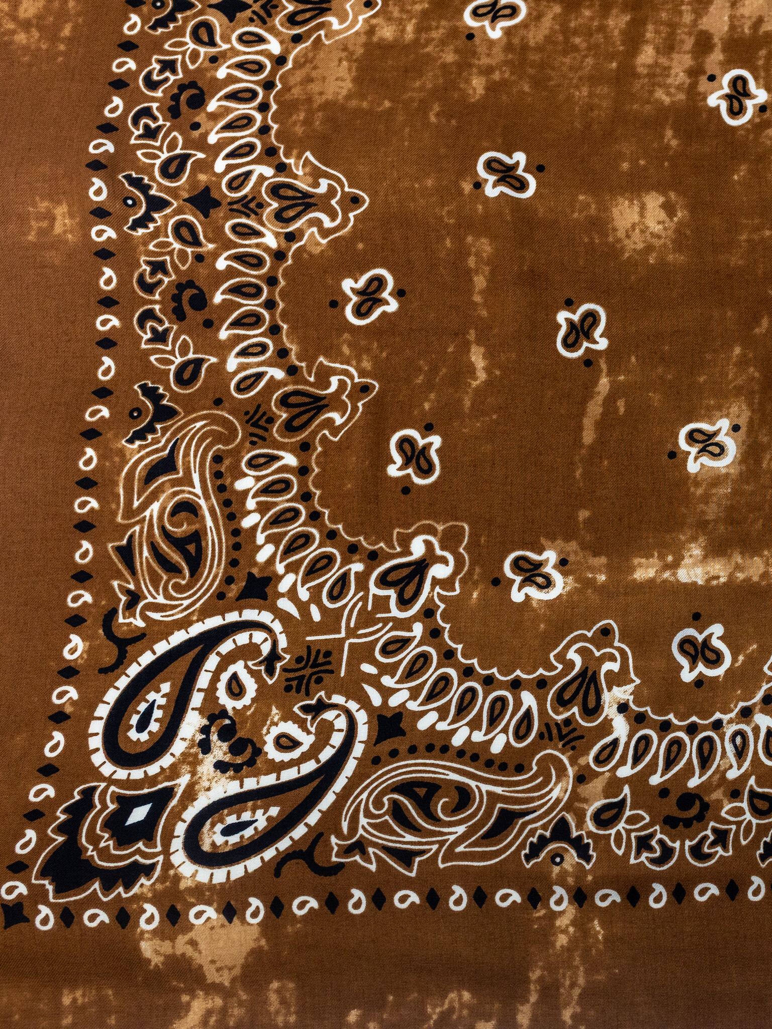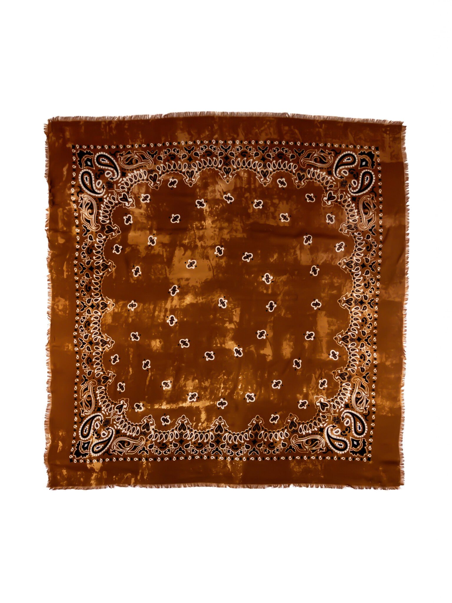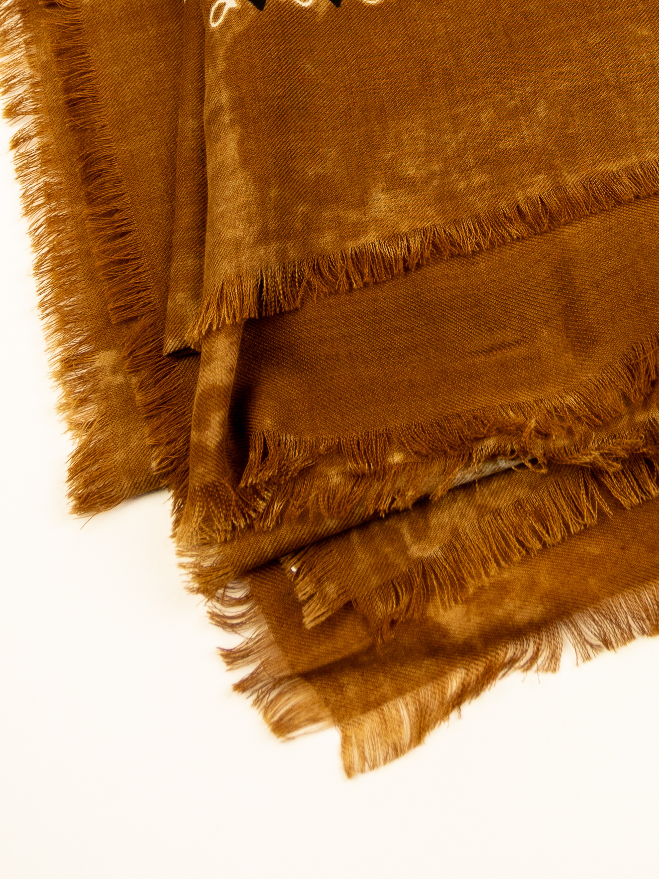 Brush strokes bandana print in vicuna color with delicate fringed edges.