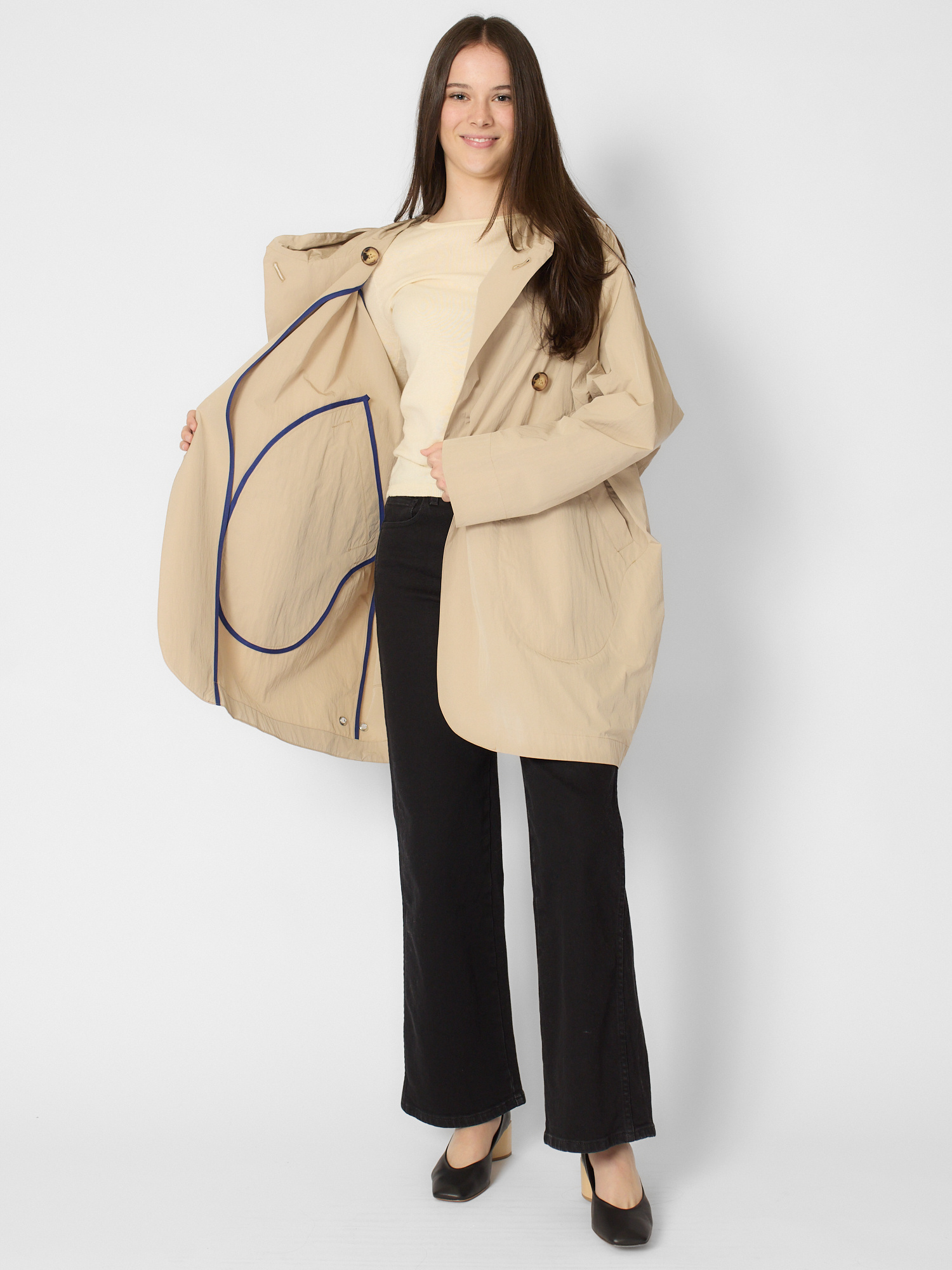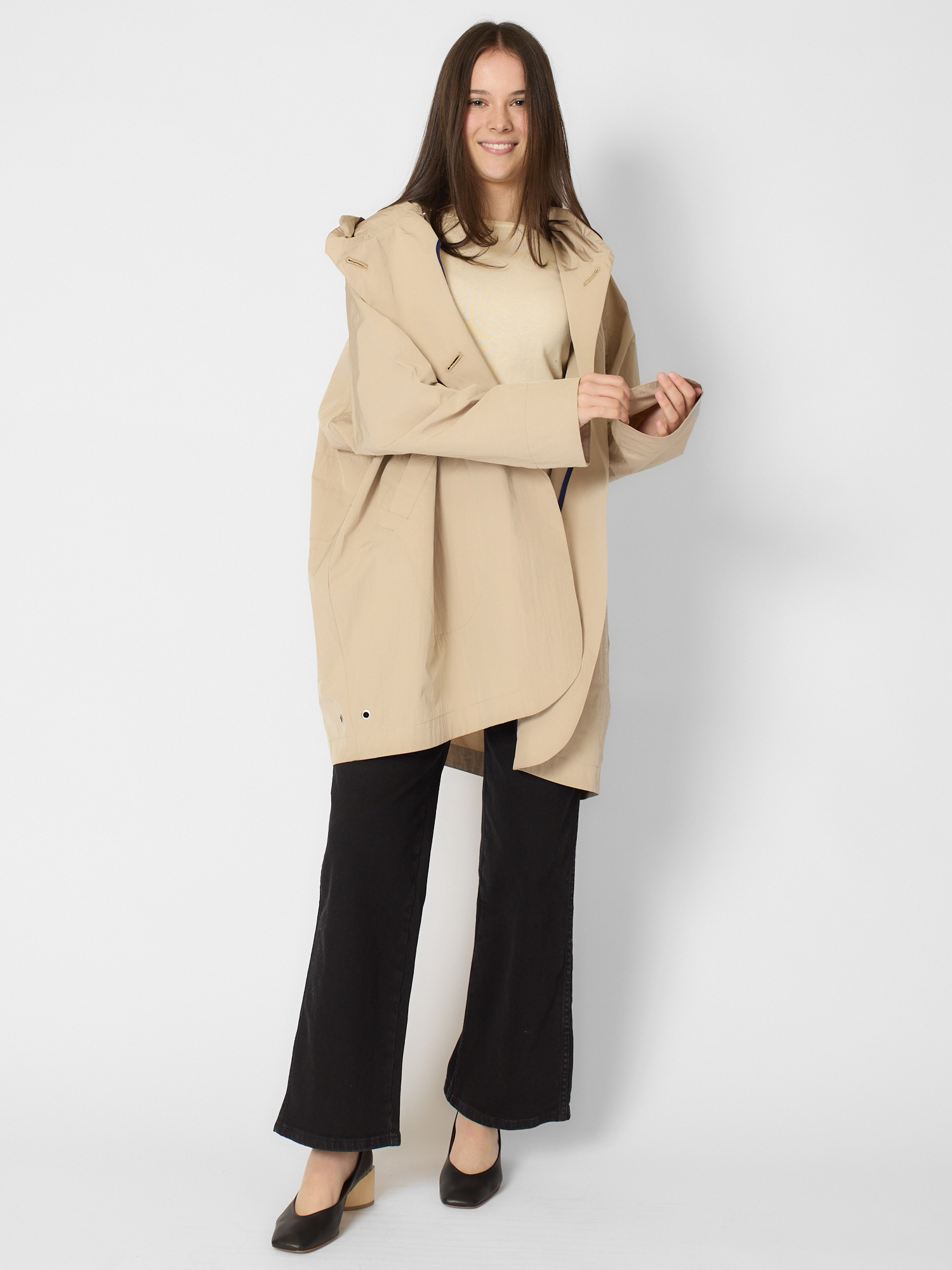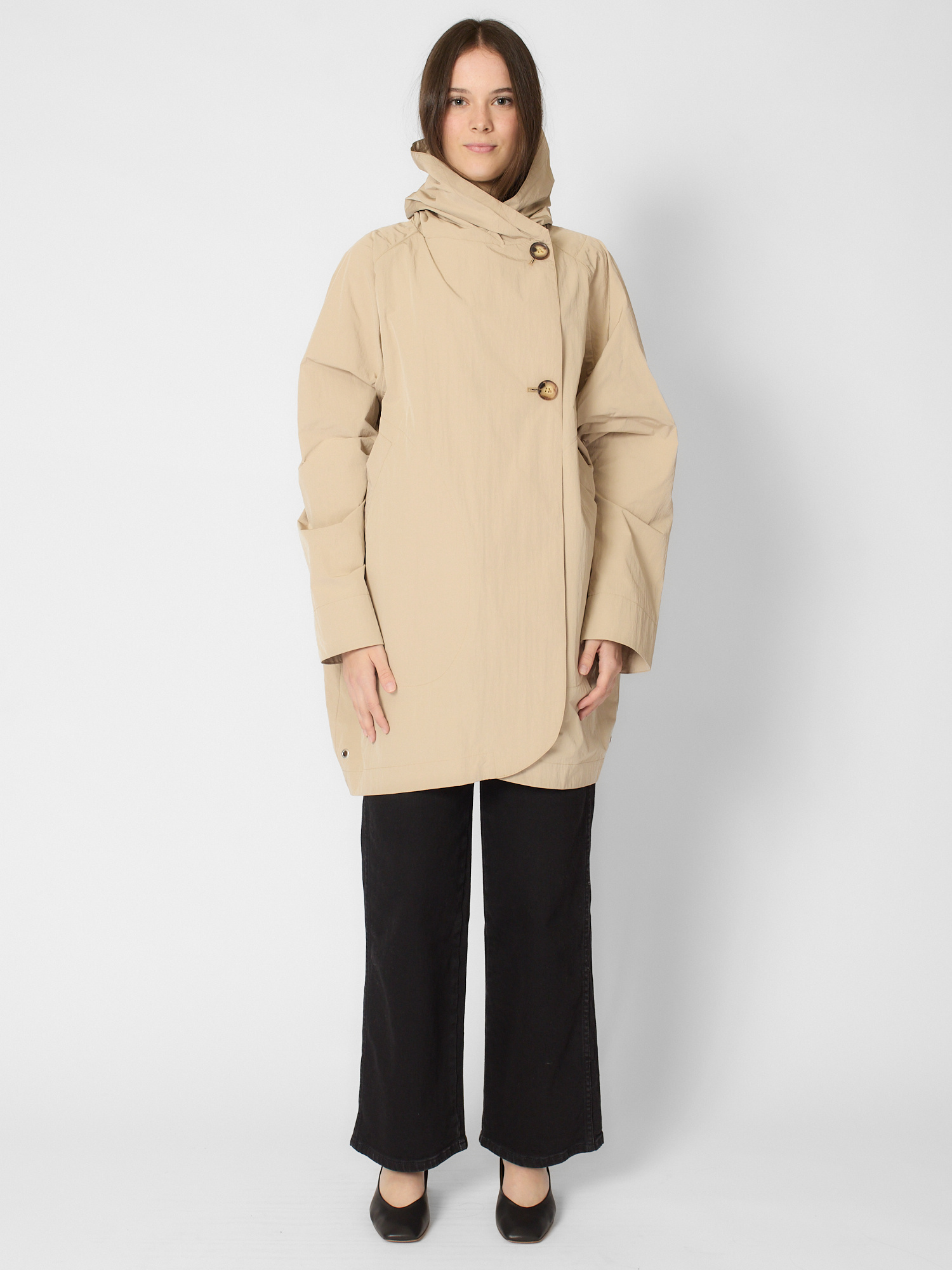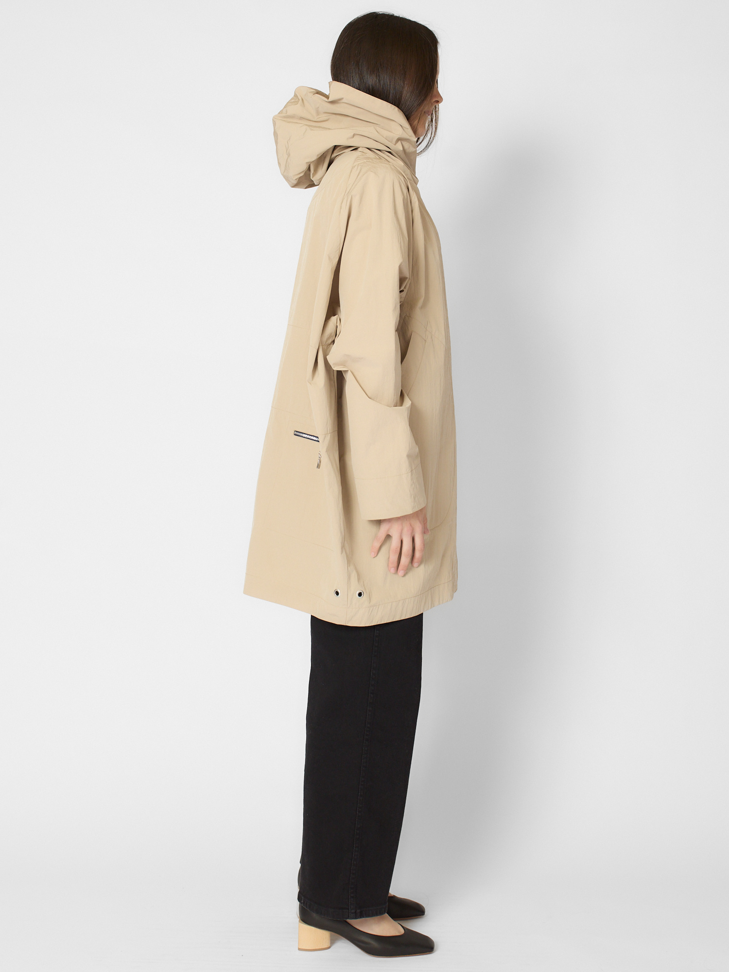 Water-repellent cotton blend features a hood, deep side pockets, and signature back pockets.