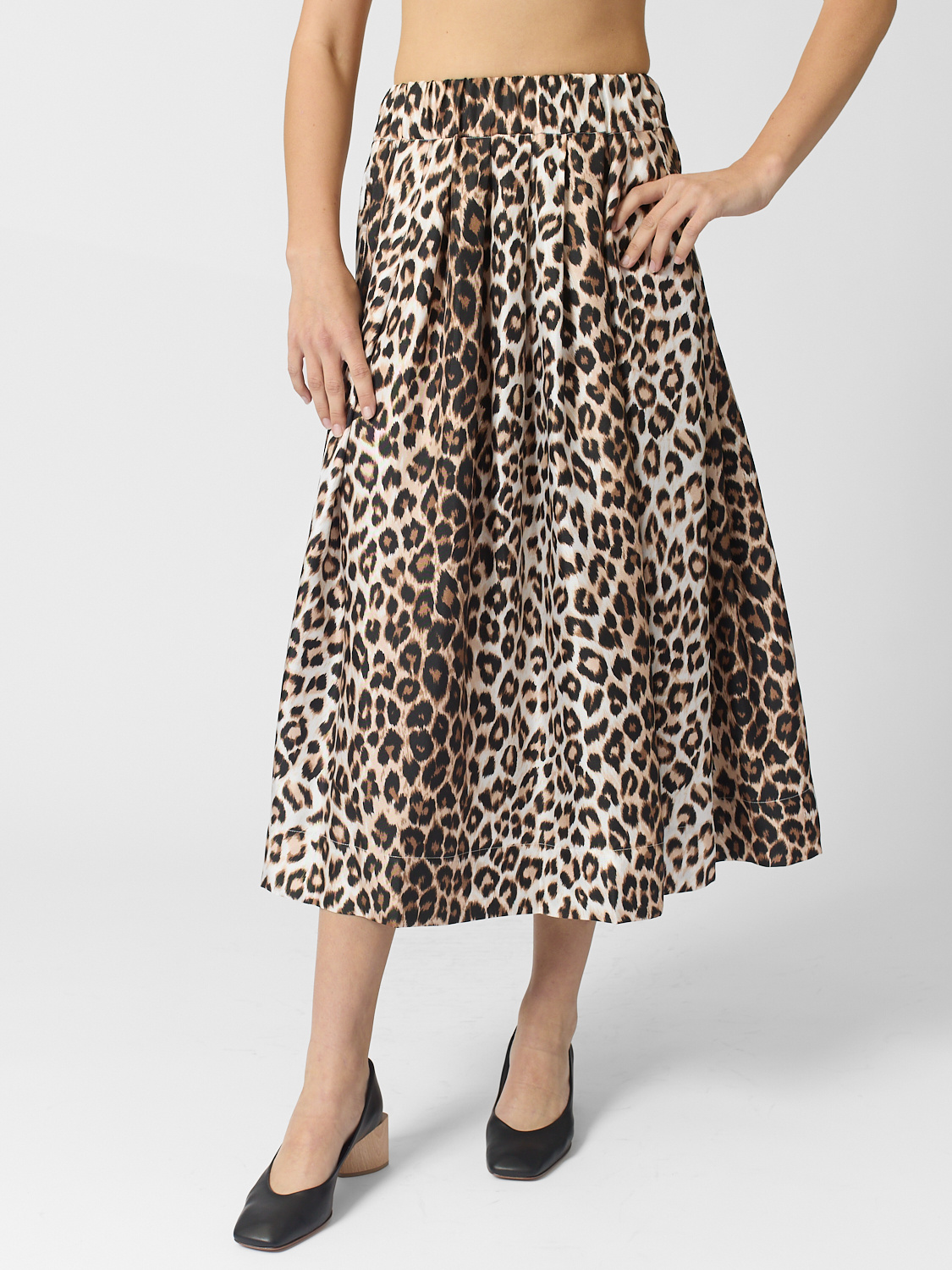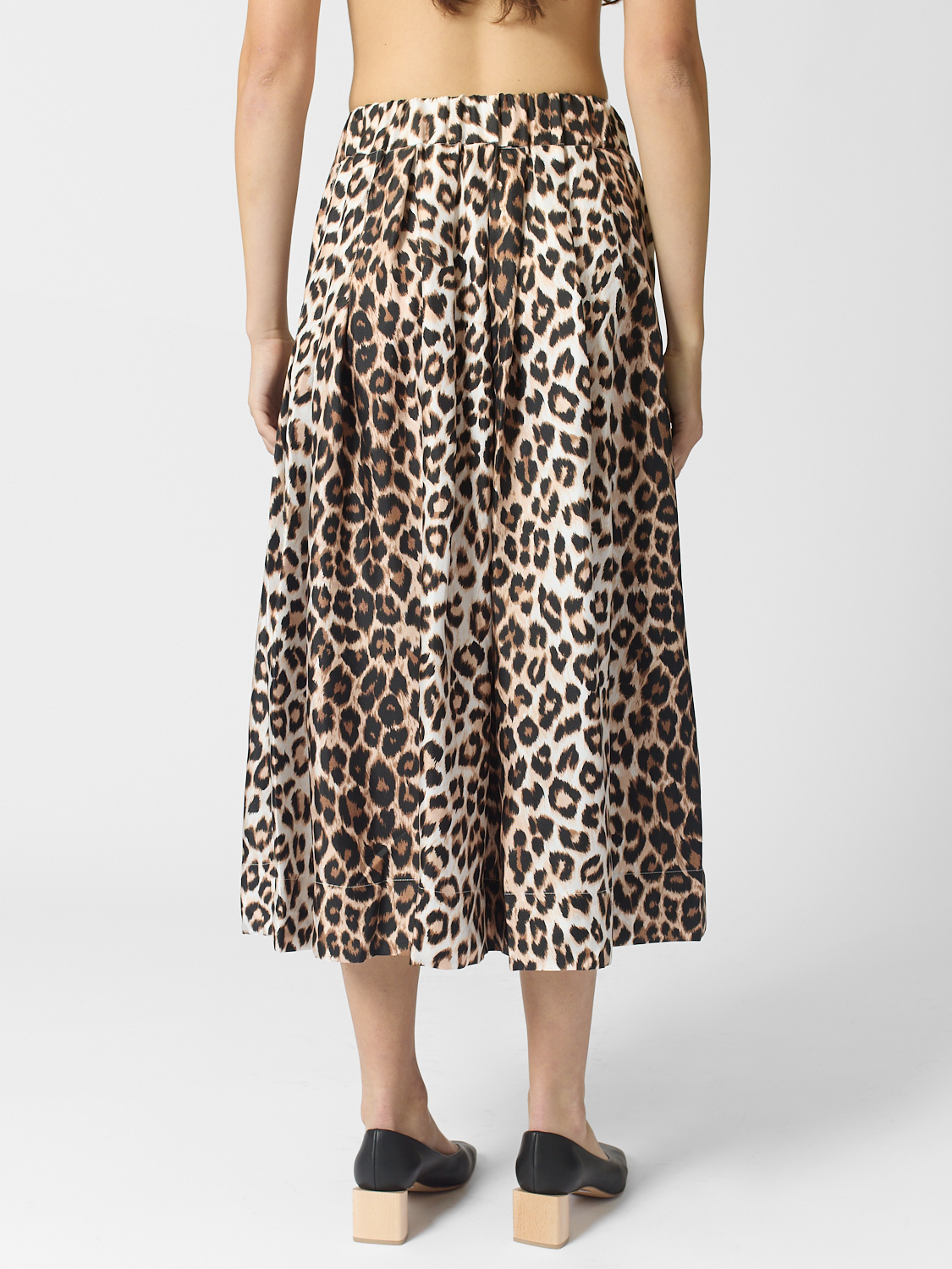 Midi flared skirt with pleats at the waist, an elastic waistband, and silk twill.