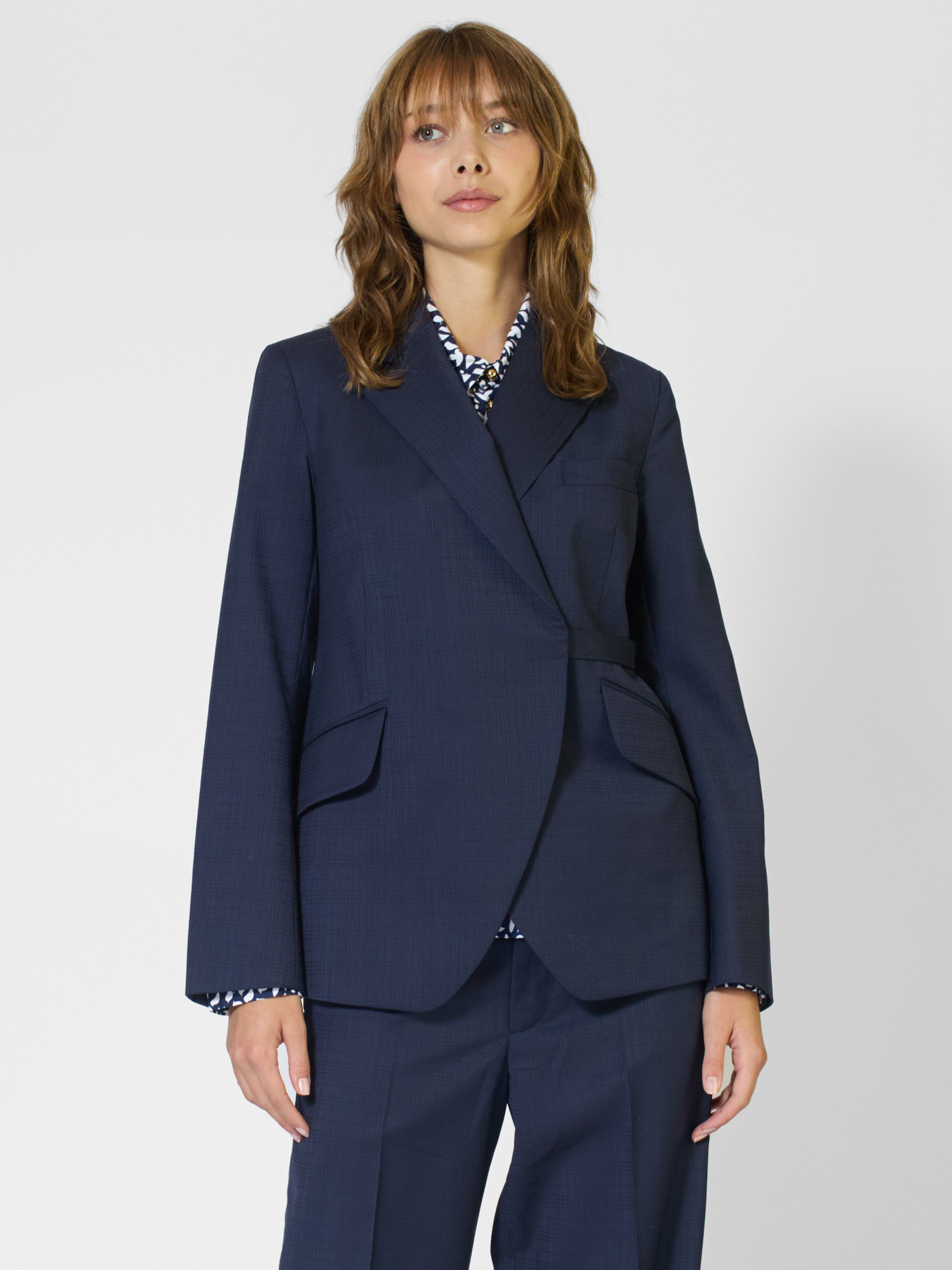 The classic double-breasted silhouette with a concealed button closure and a delicate belt detail that allows you to cinch the waist.