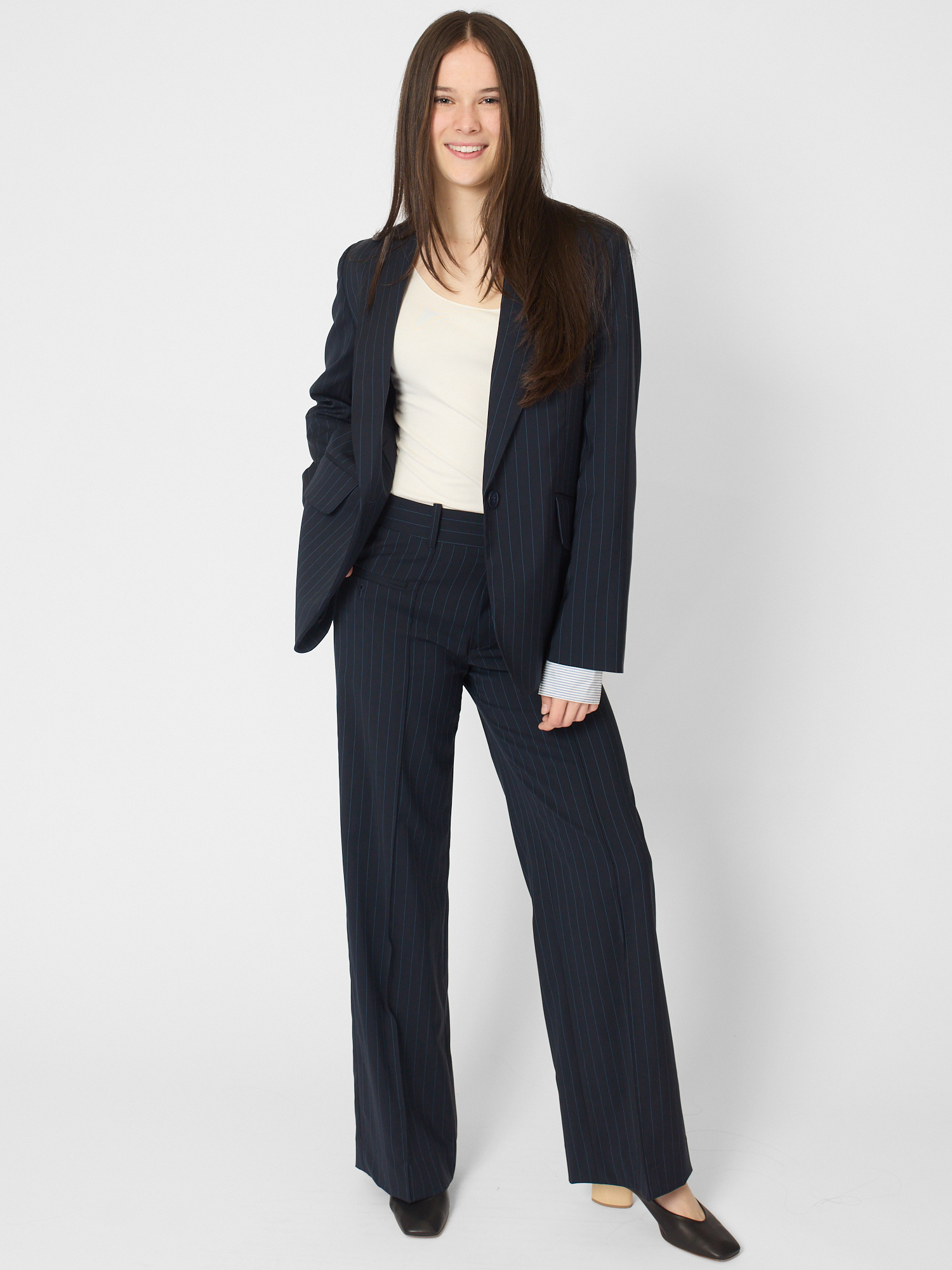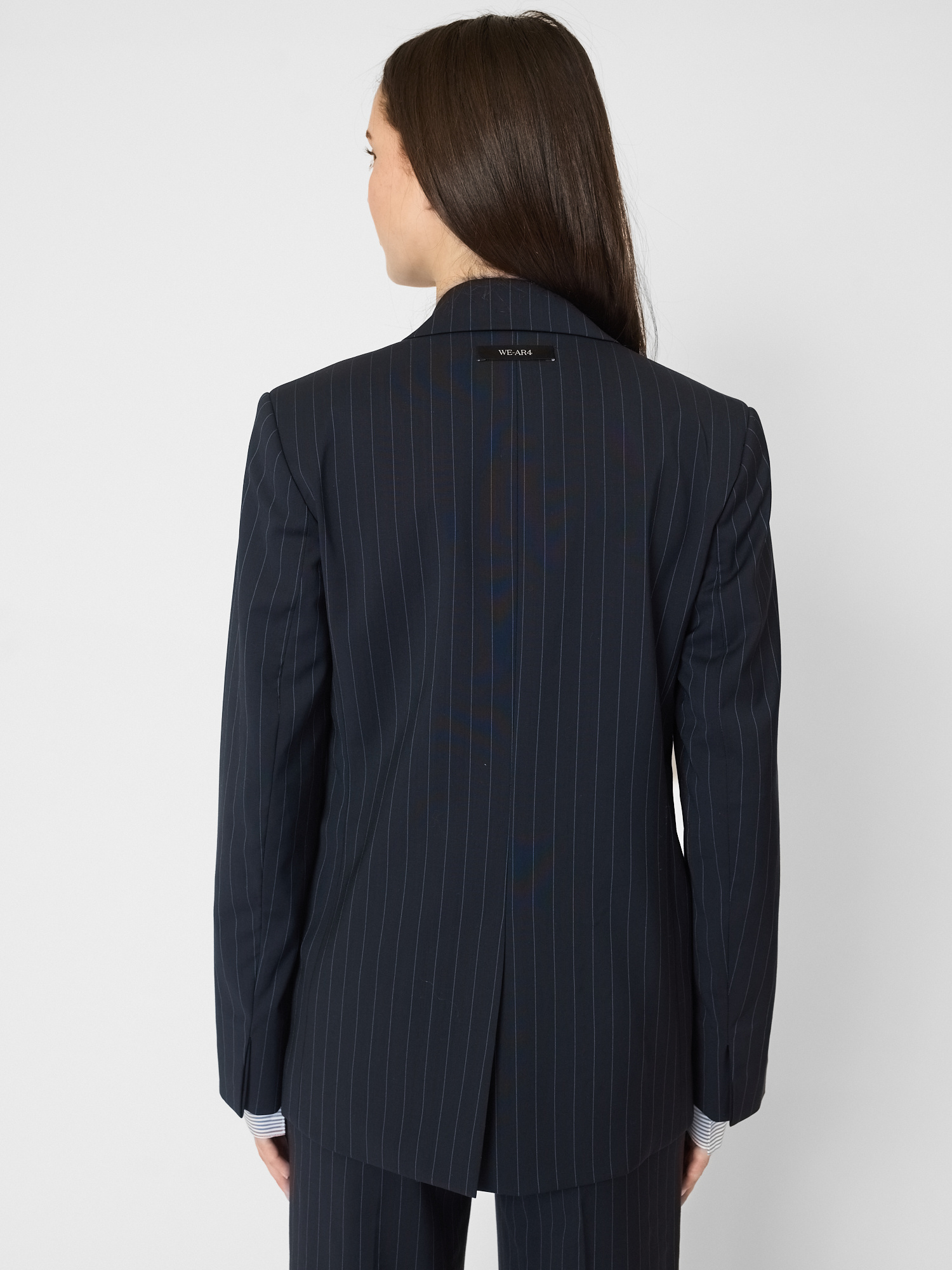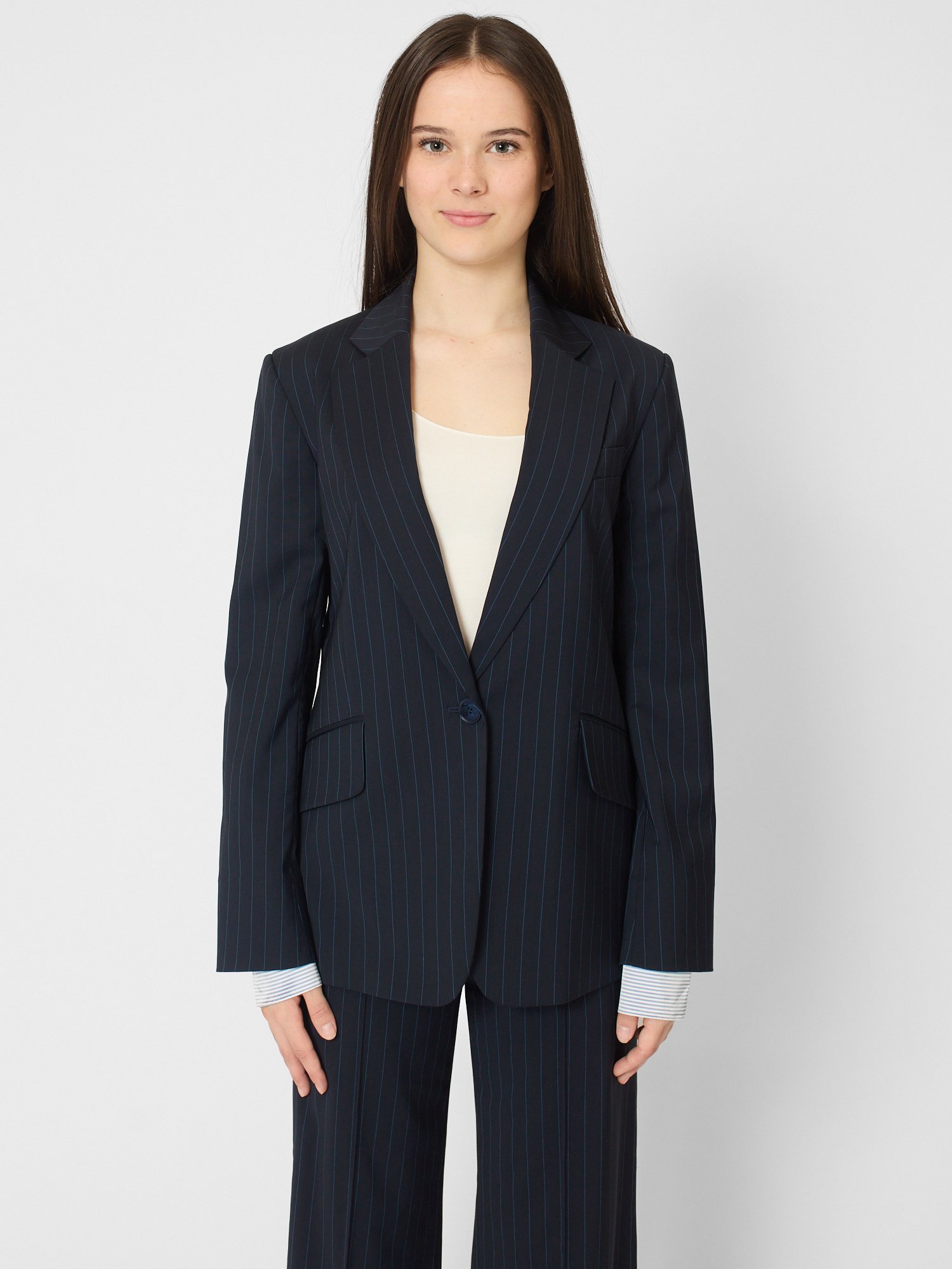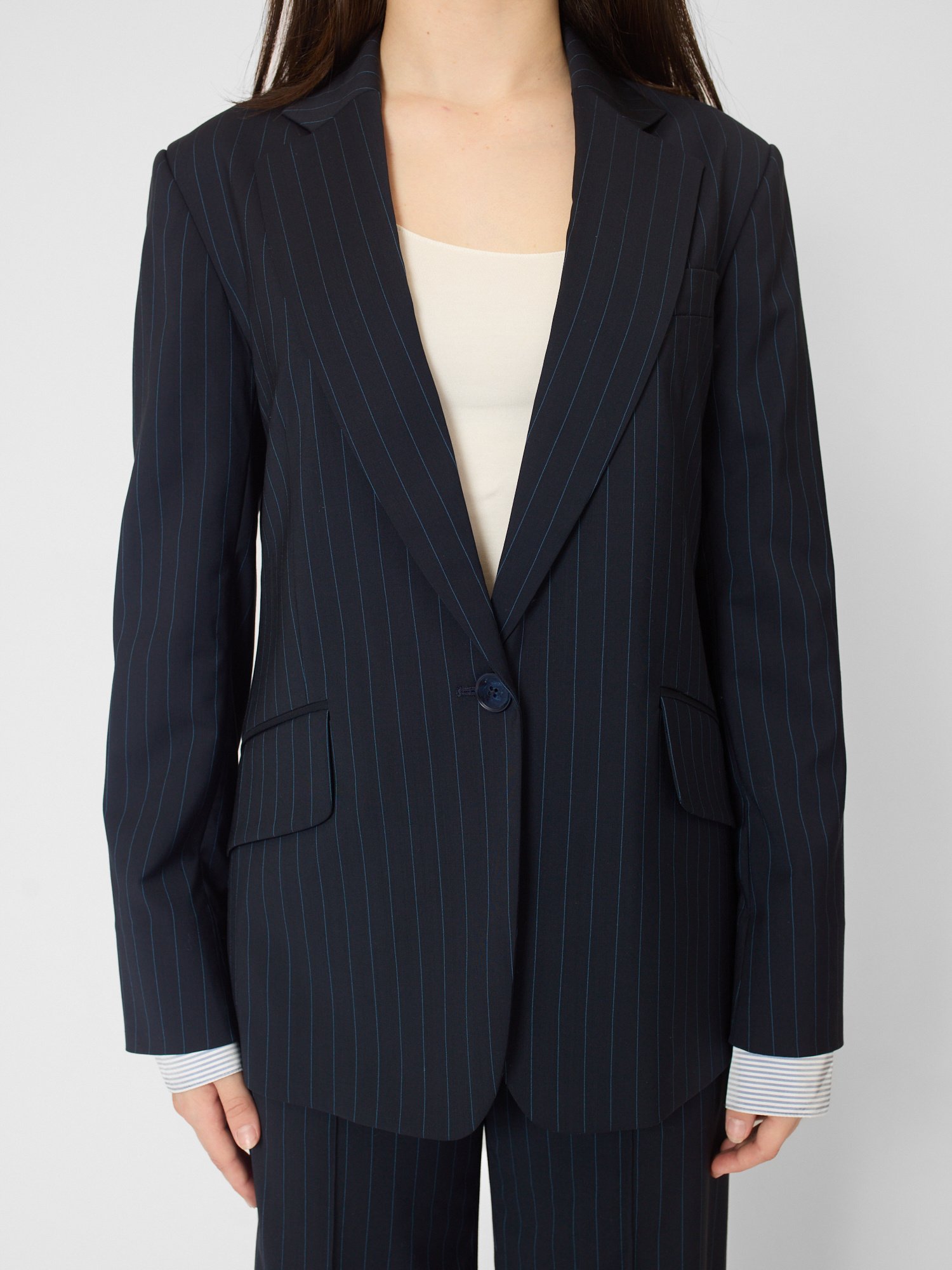 Effortless blazer features built-in styling with a contrasting striped lining that extends through the inside sleeves. a classic notched lapel and one-button closure