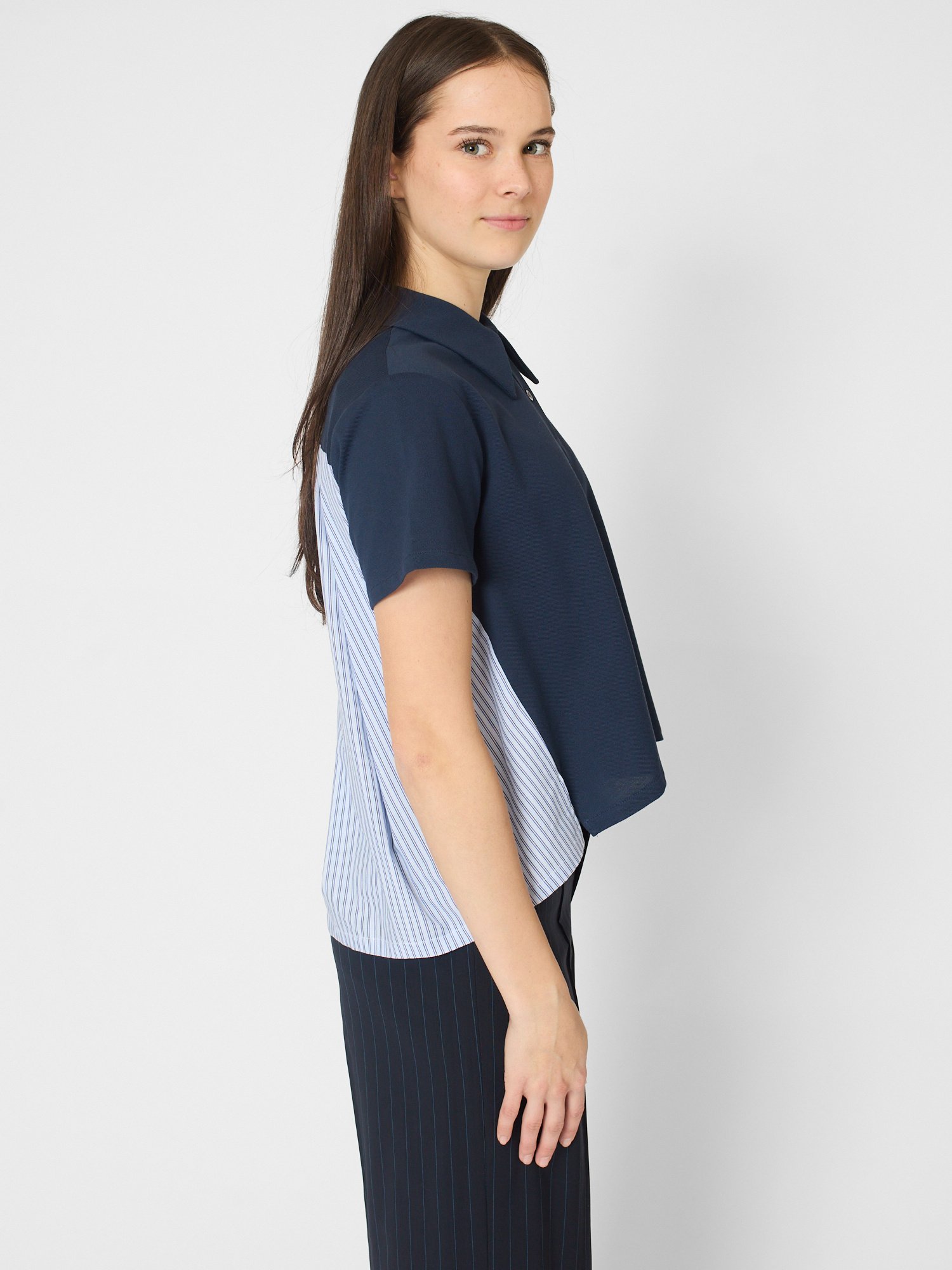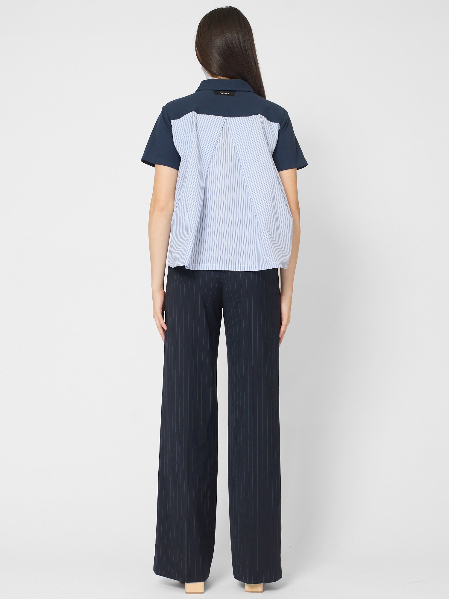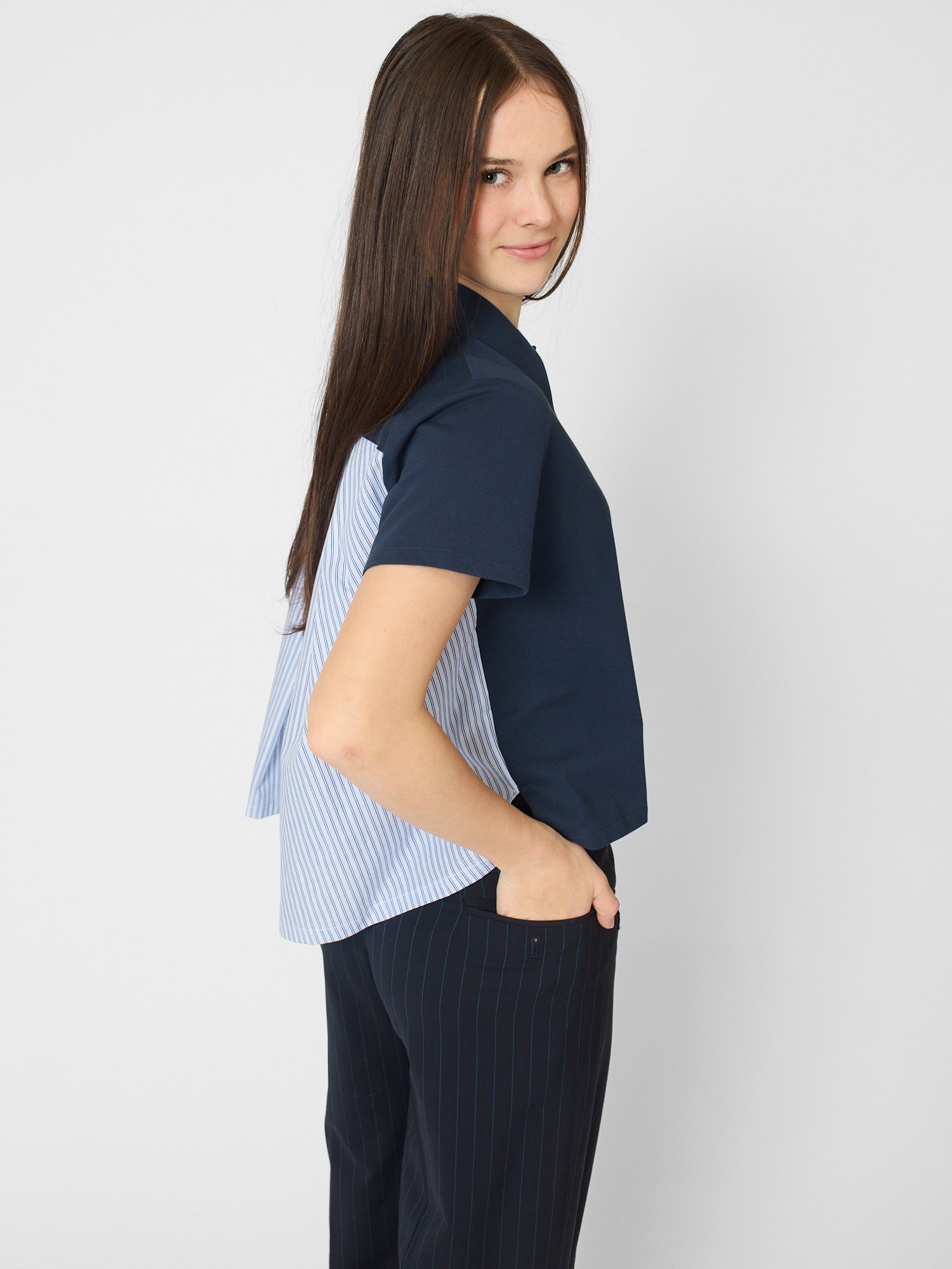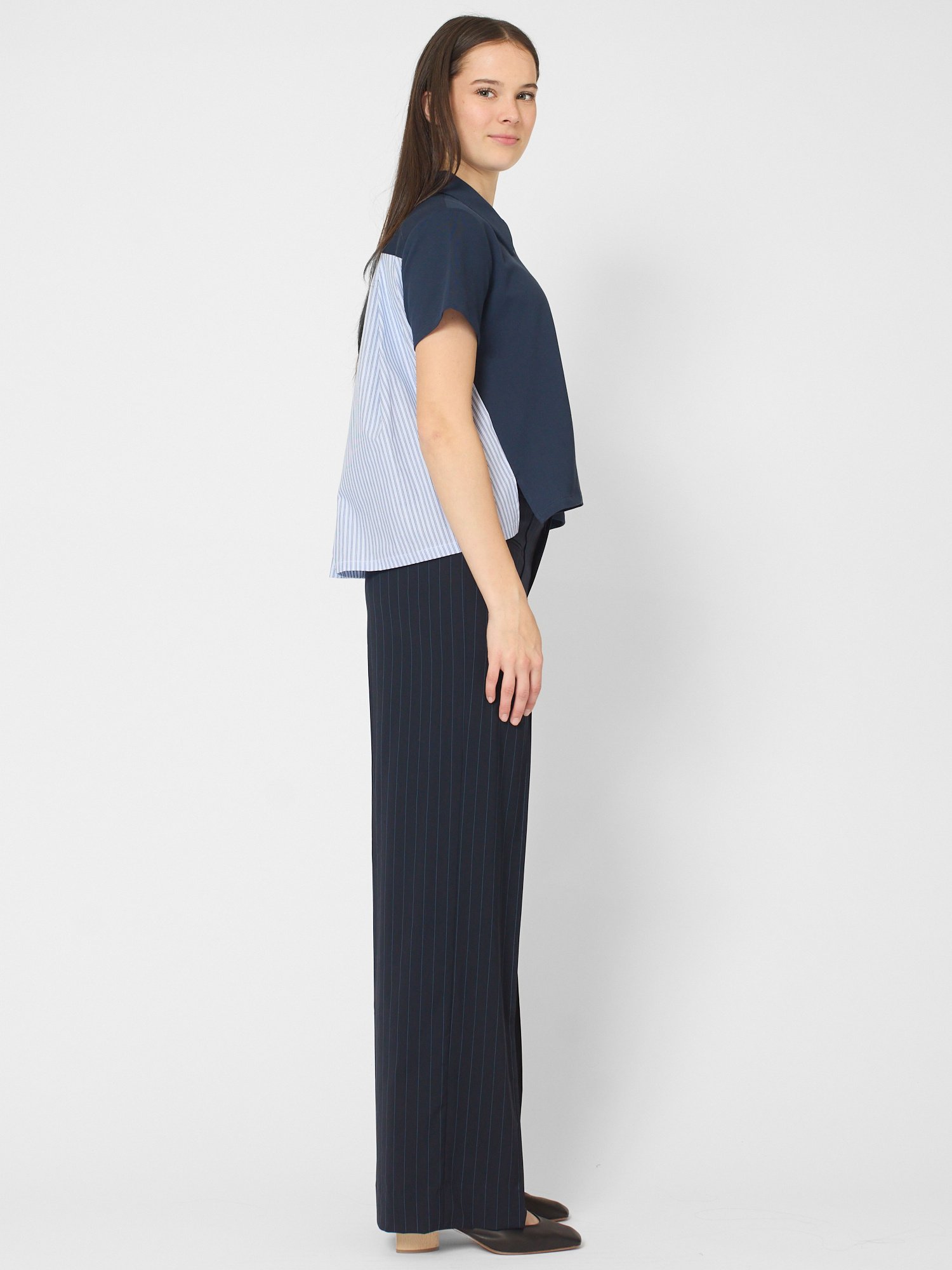 A structured cotton pique front with a crisp cotton poplin back and a central box pleat, creating a voluminous,