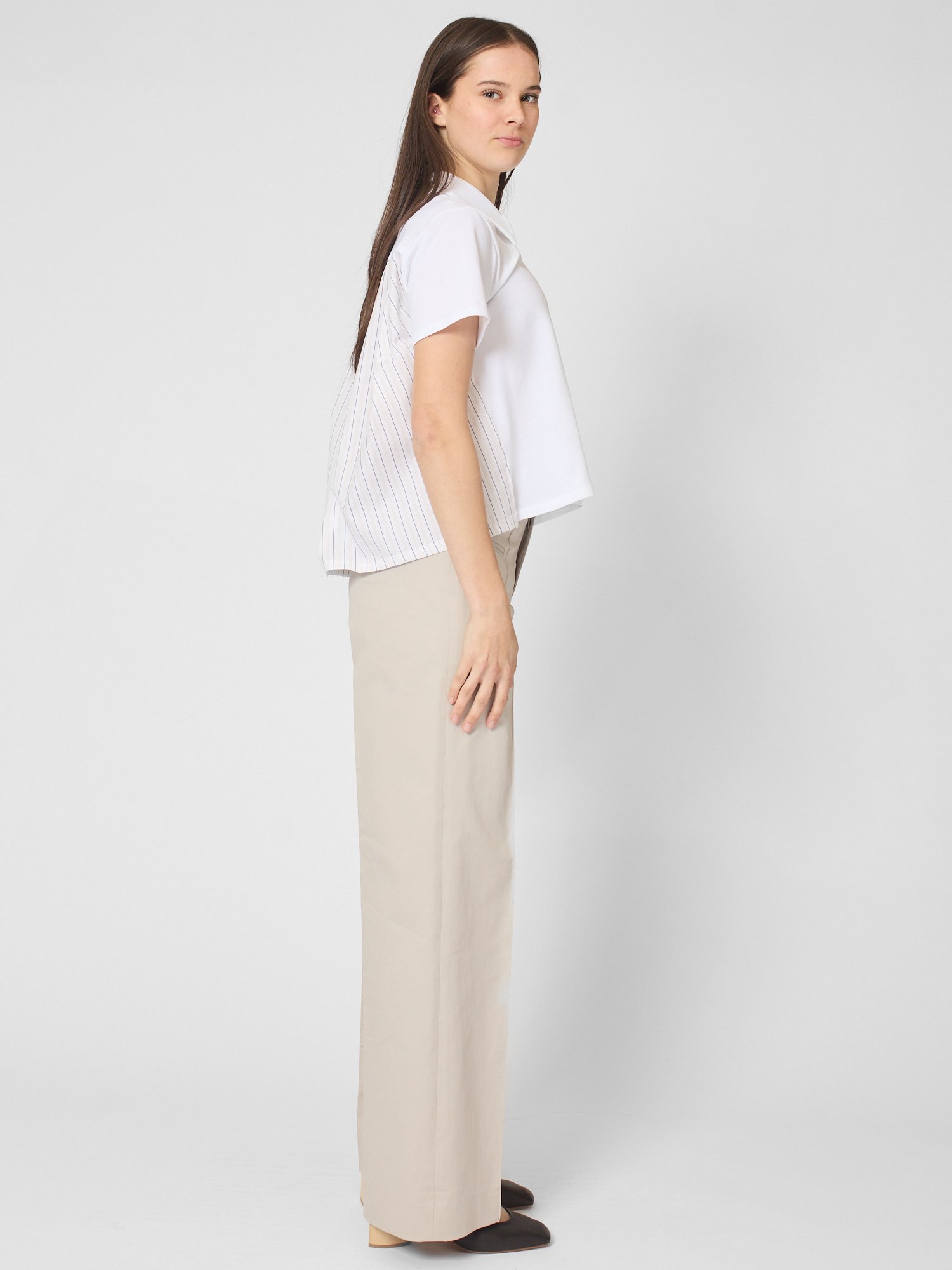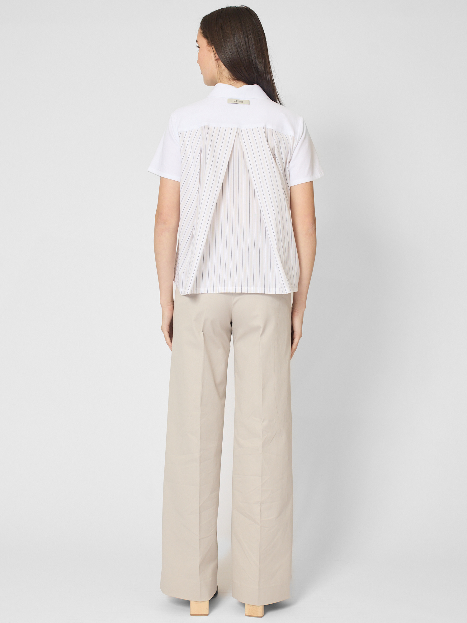 A structured cotton pique front with a crisp cotton poplin back and a central box pleat, creating a voluminous,