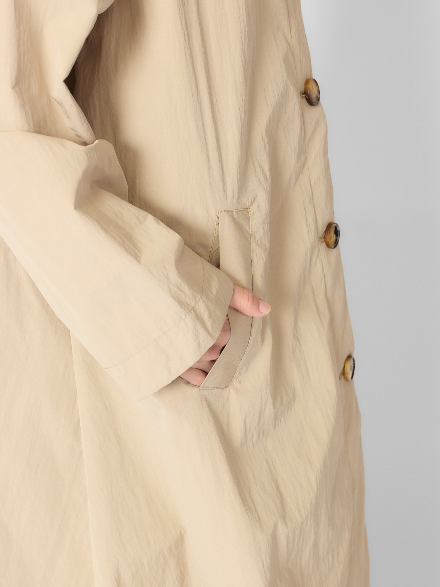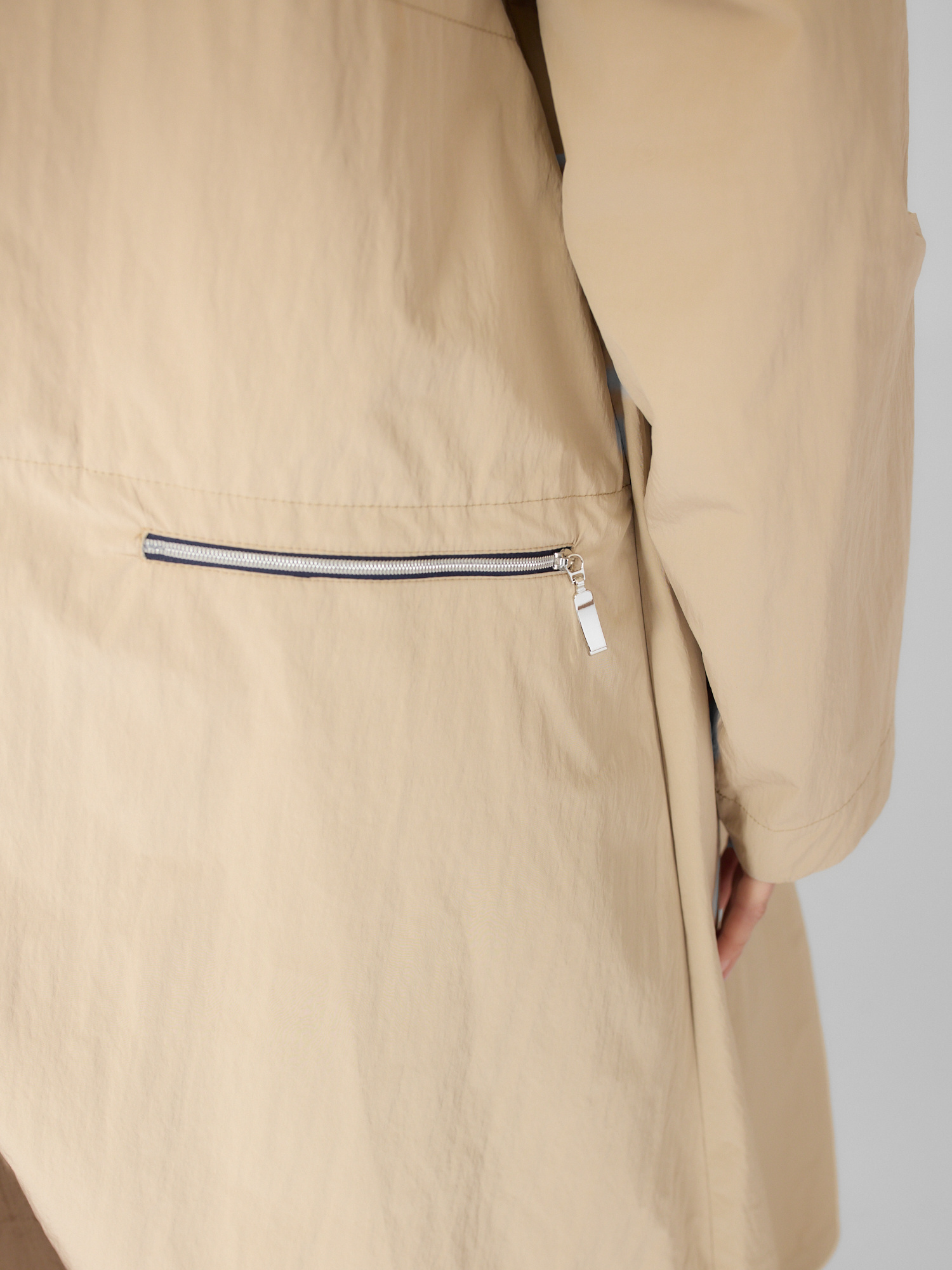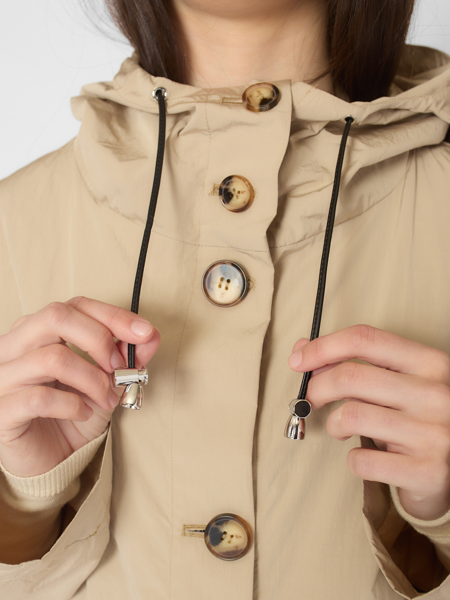 Water-repellent cotton-blend long parka features a hood, deep side pockets, and signature back pockets.