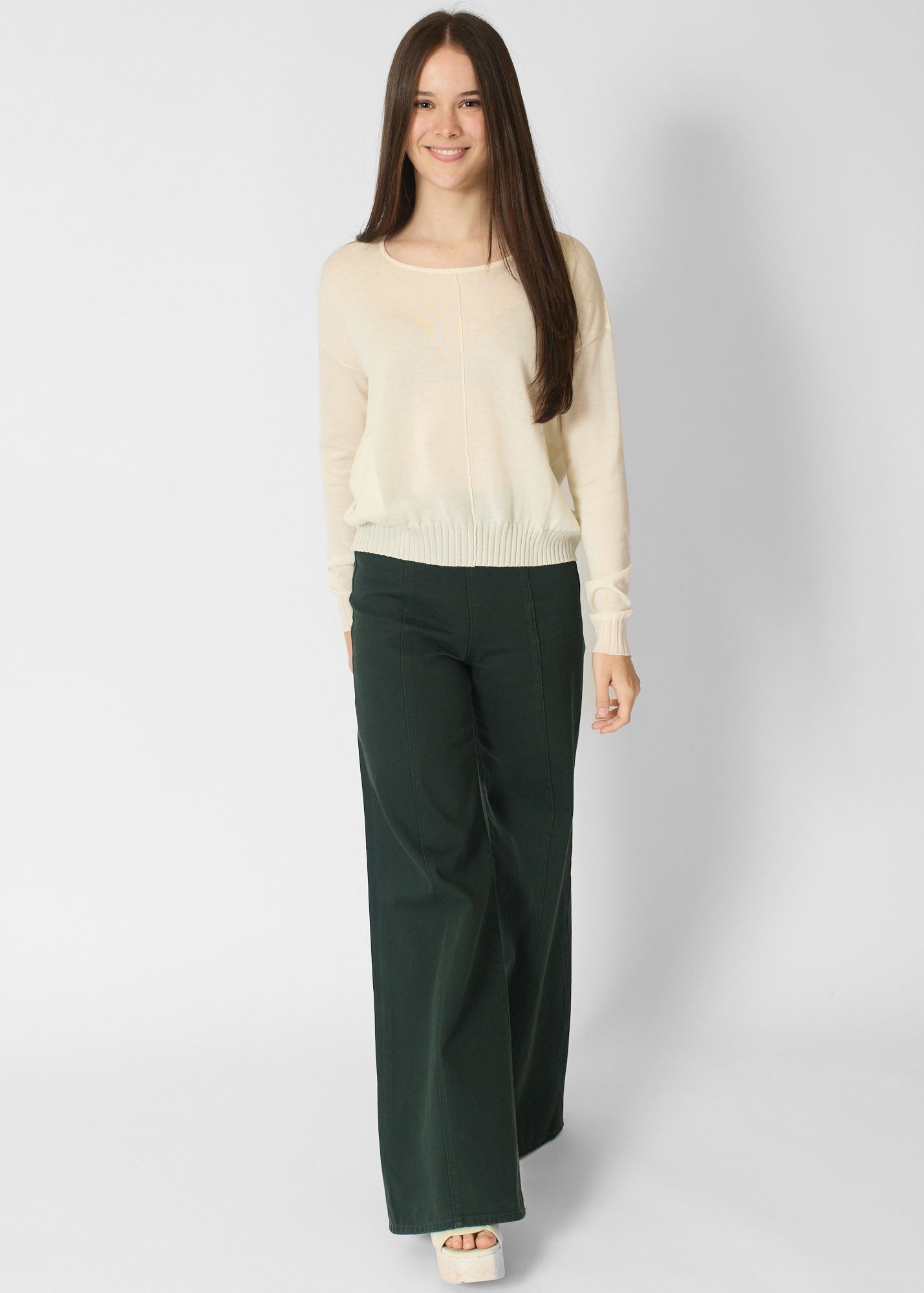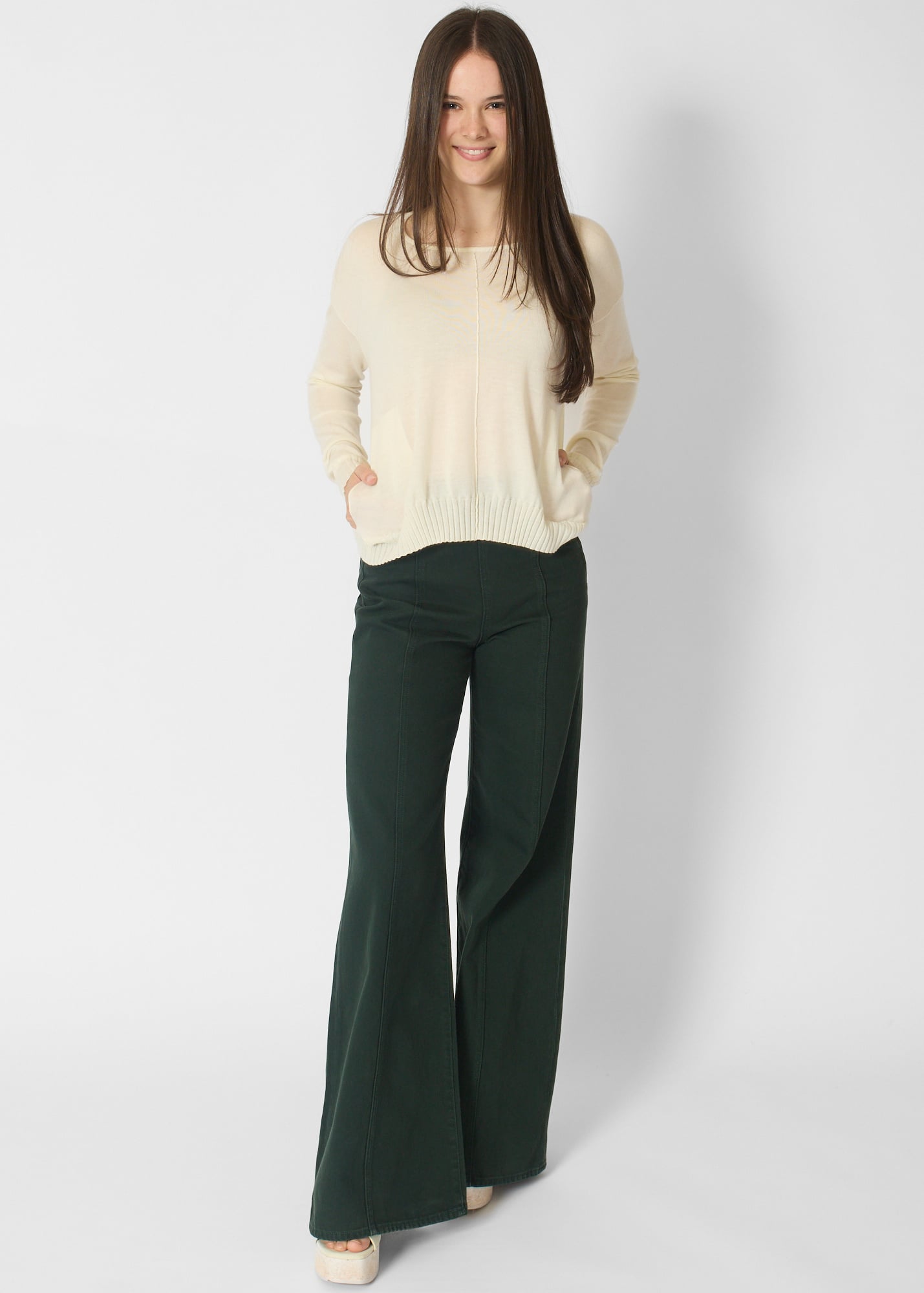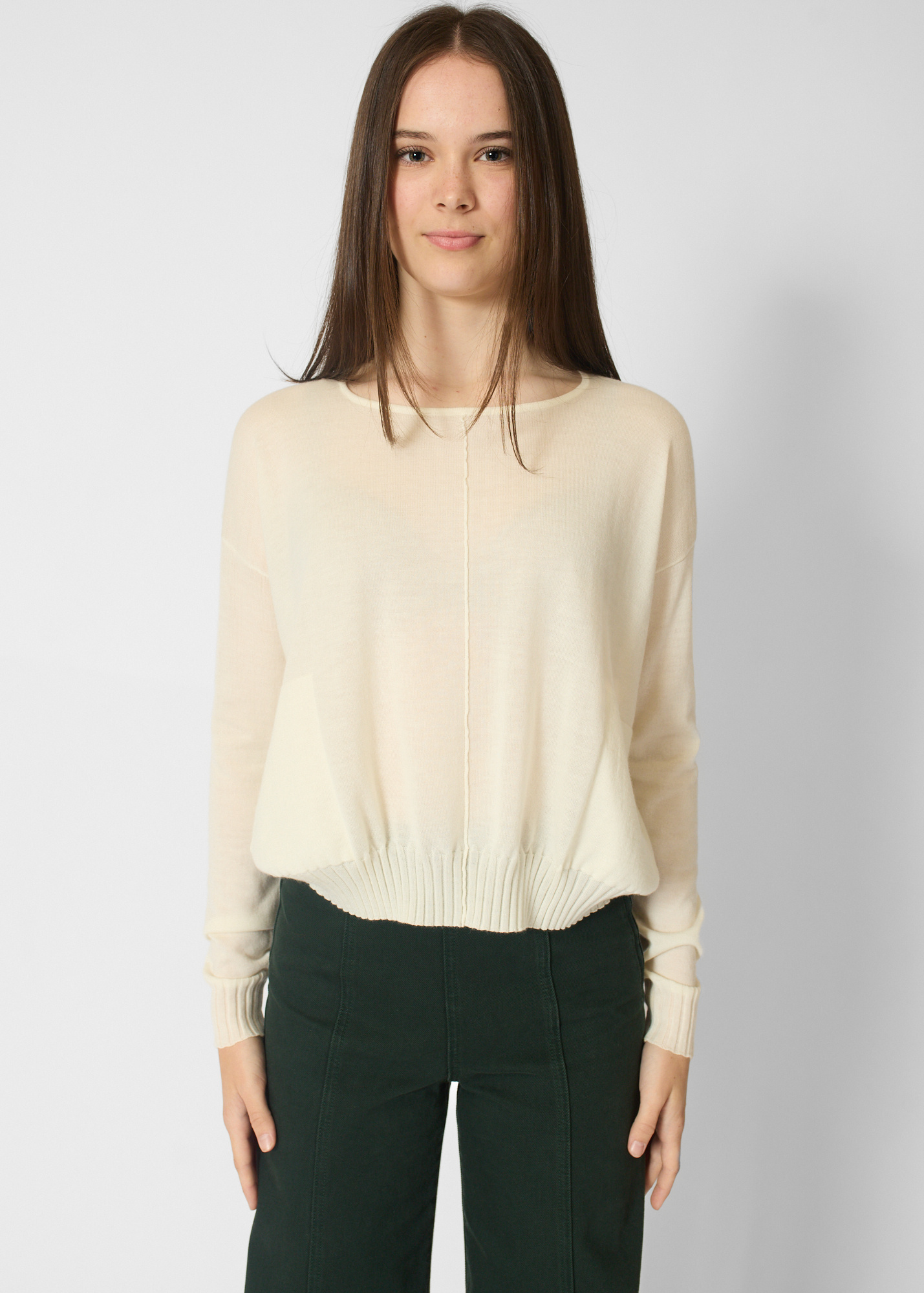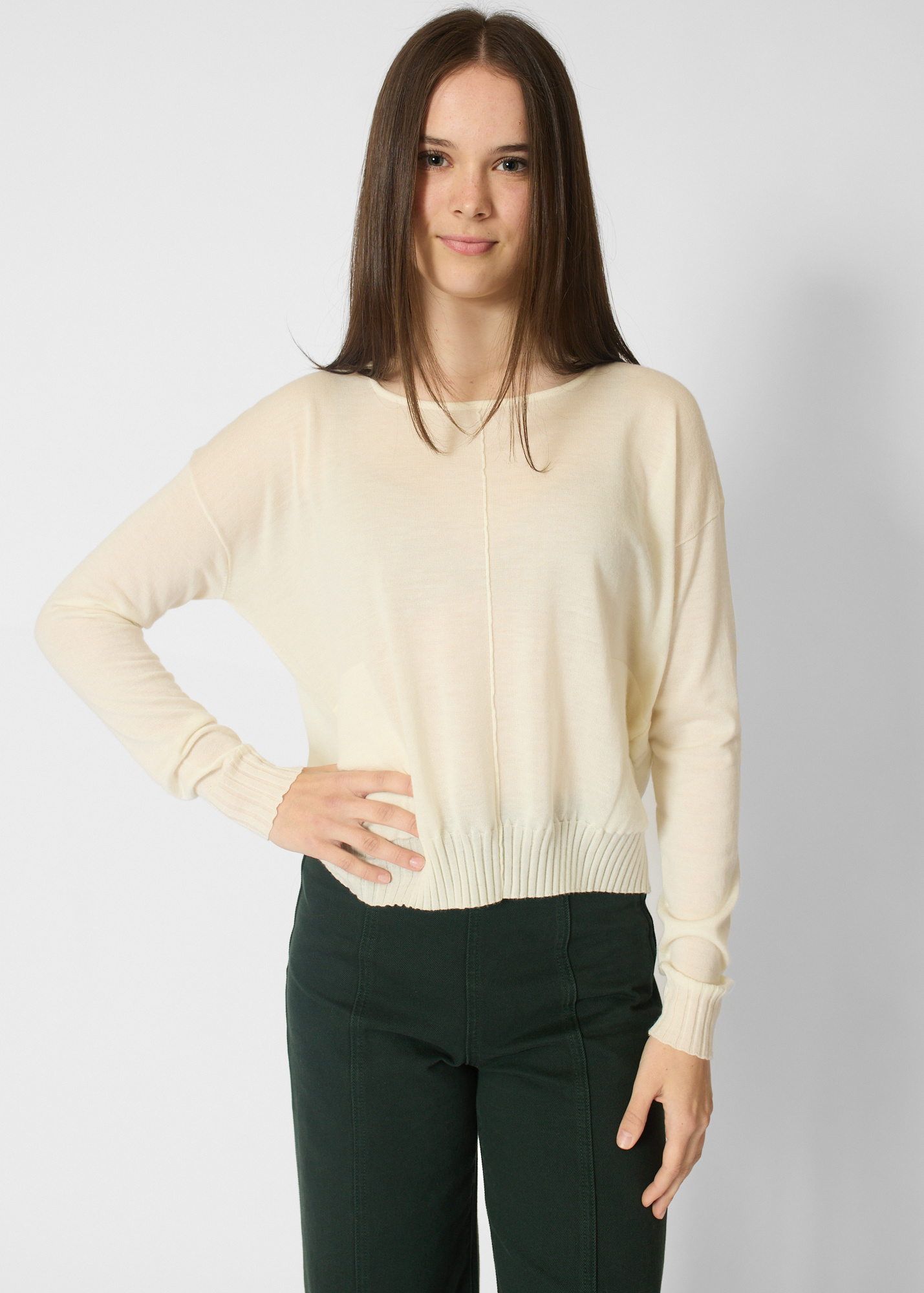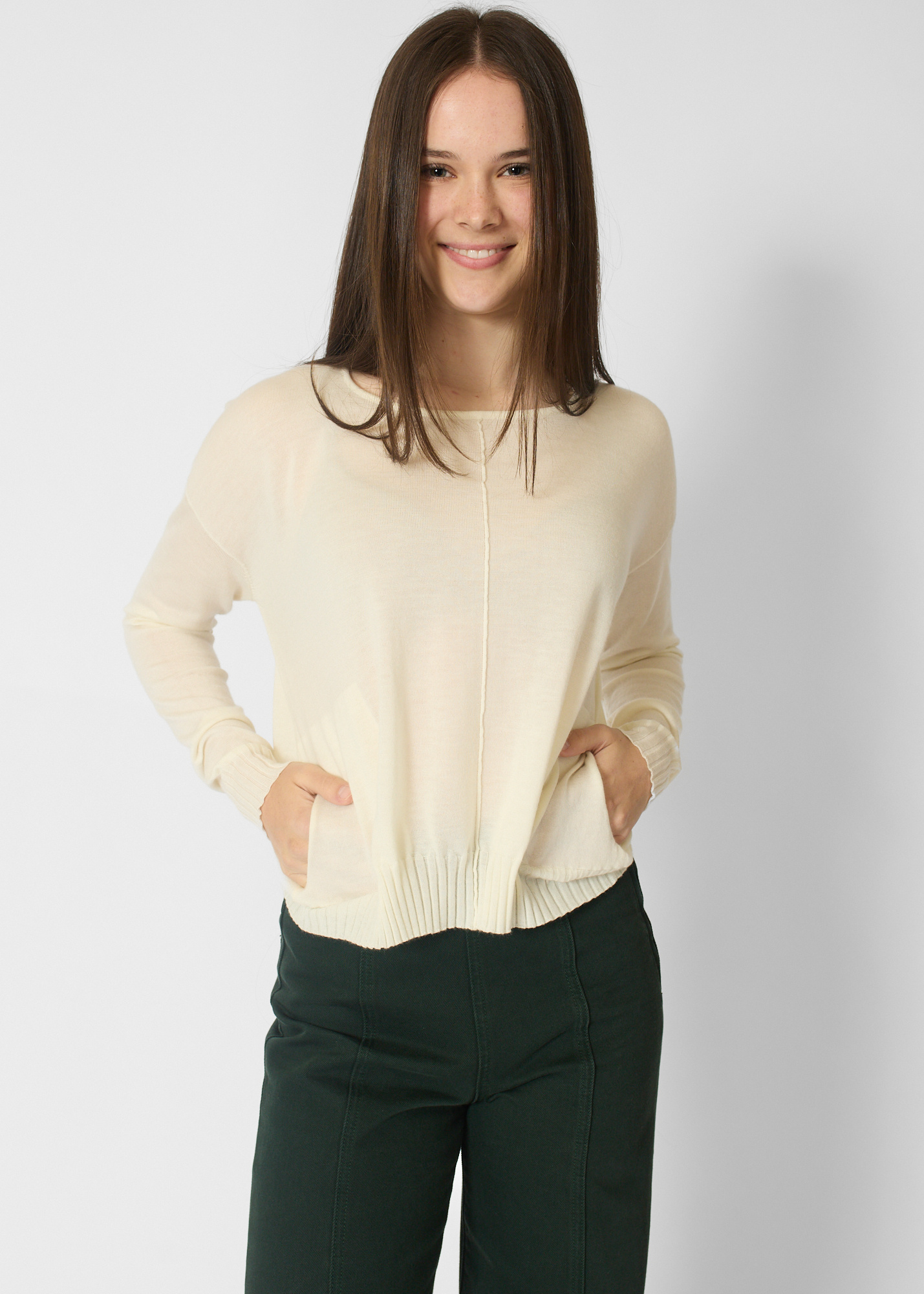 Crew collar cashmere pullover with pockets