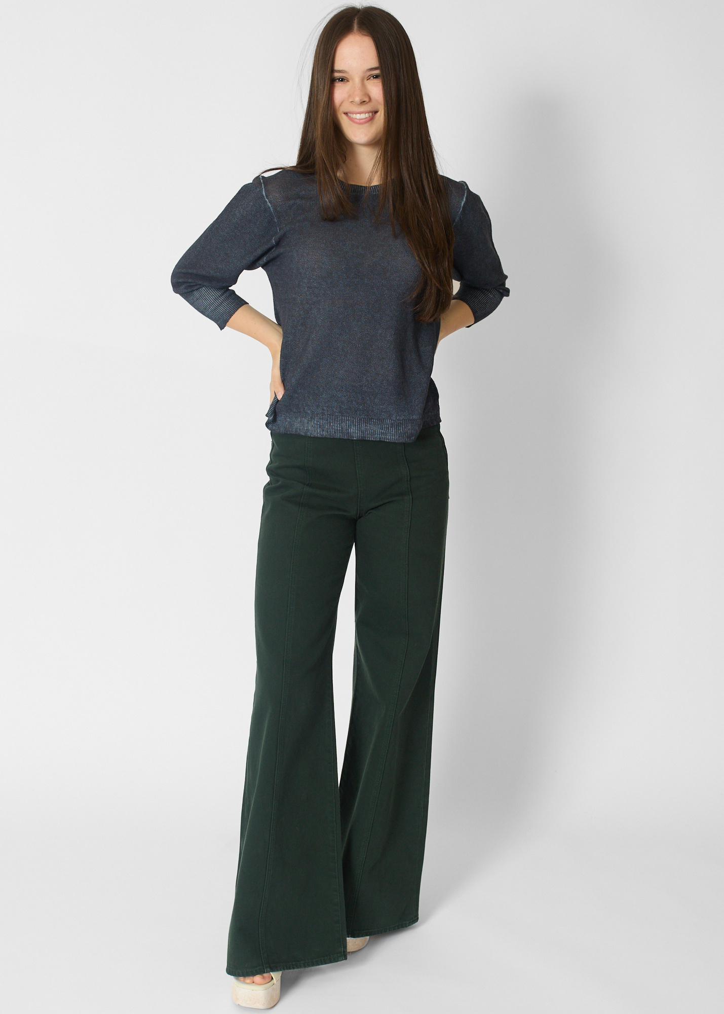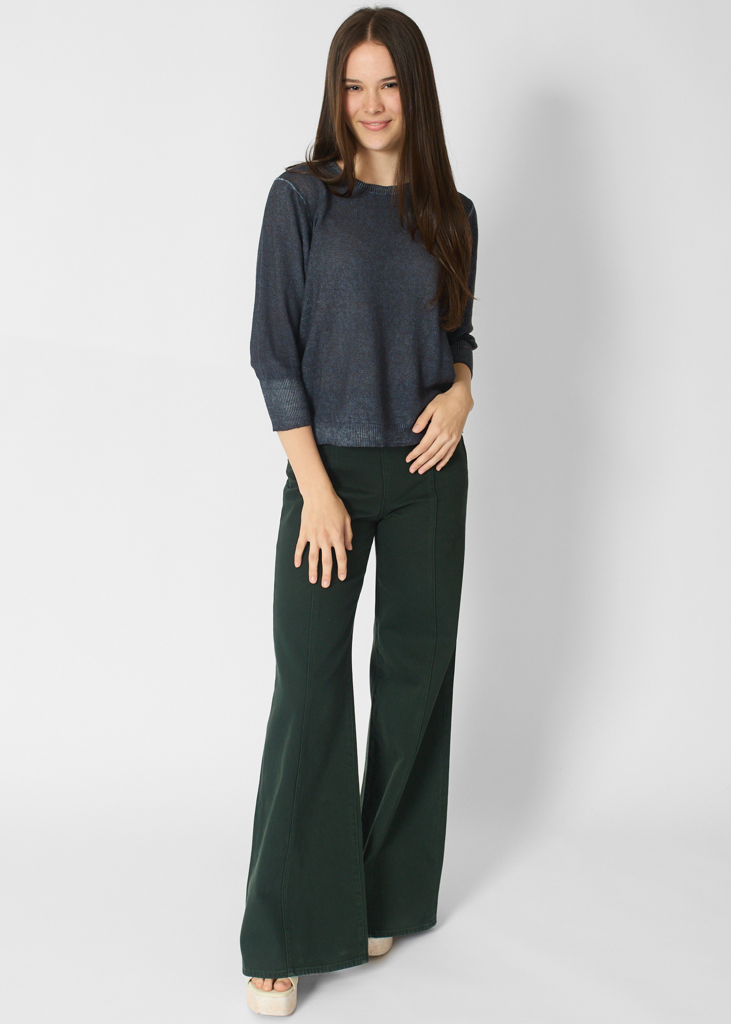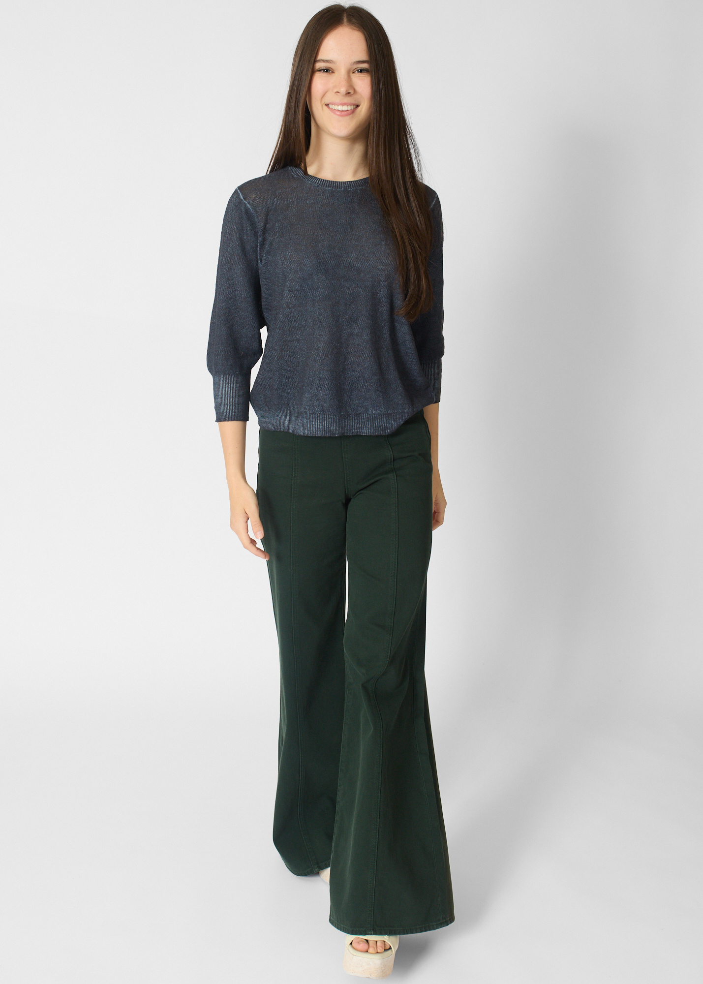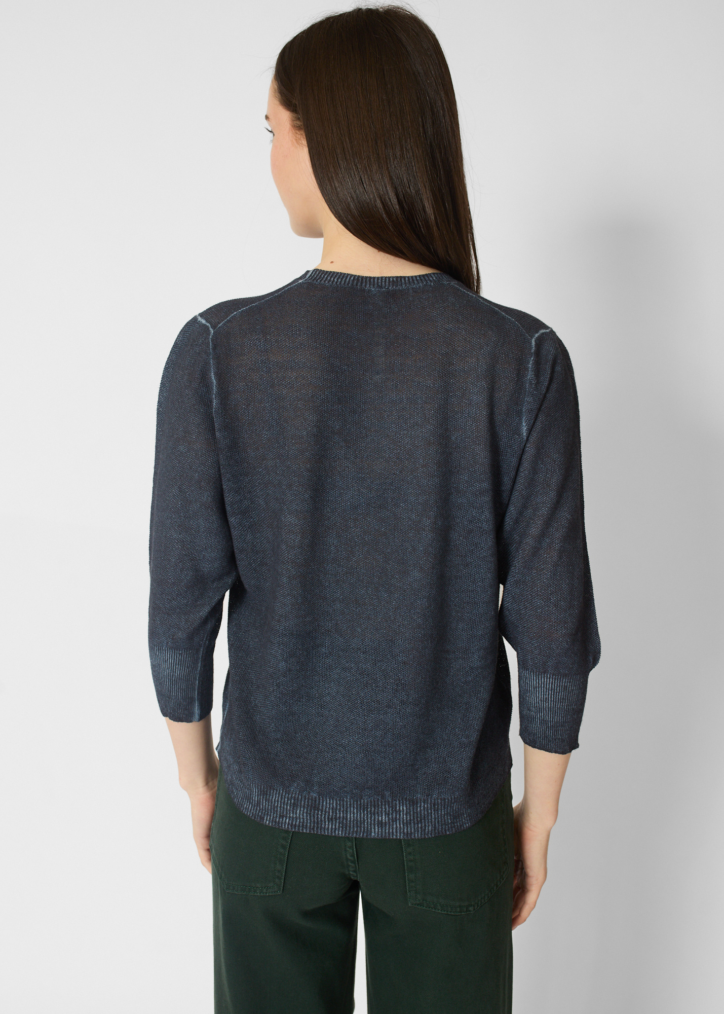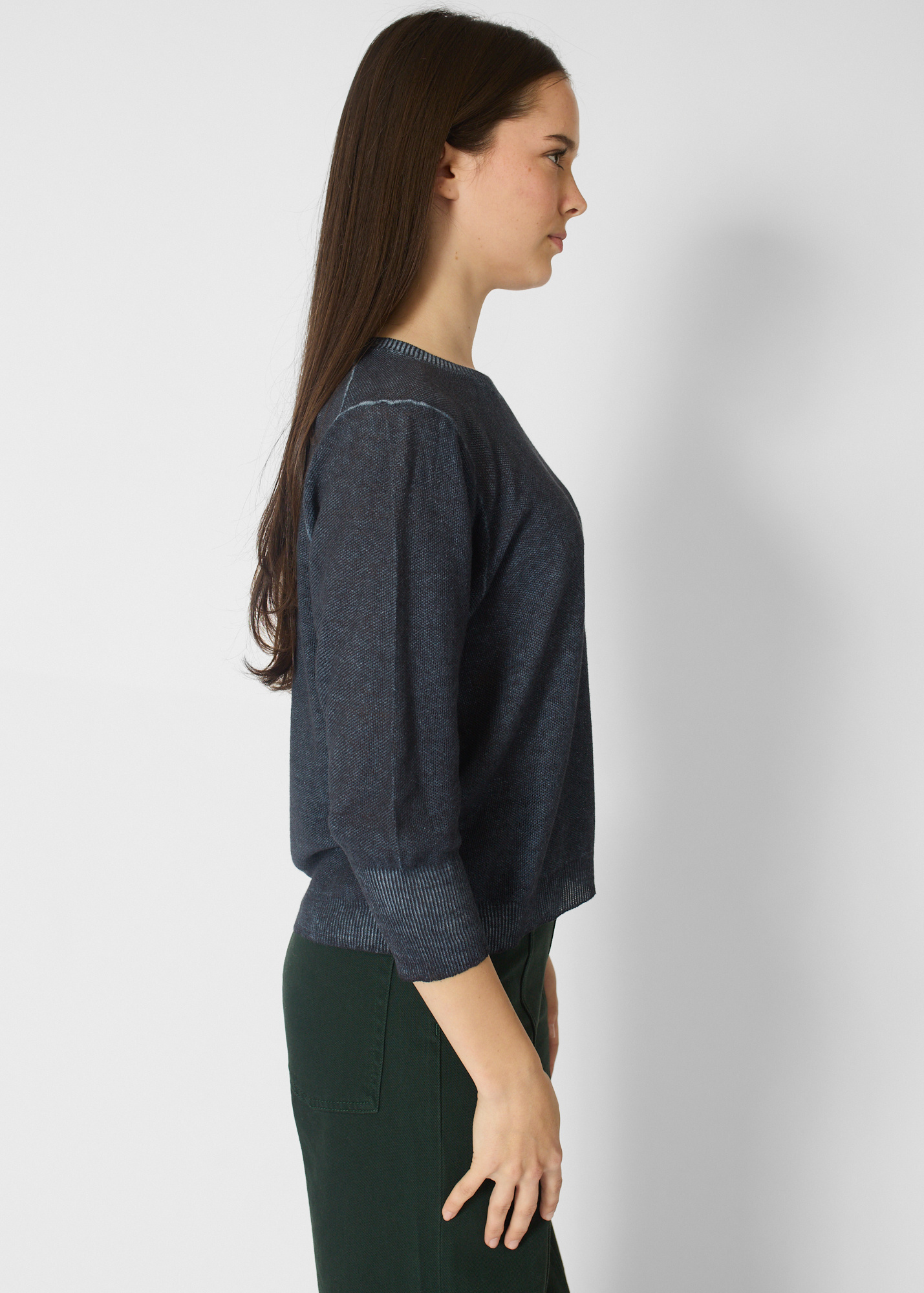 Washed navy pullover with three-quarter length sleeves