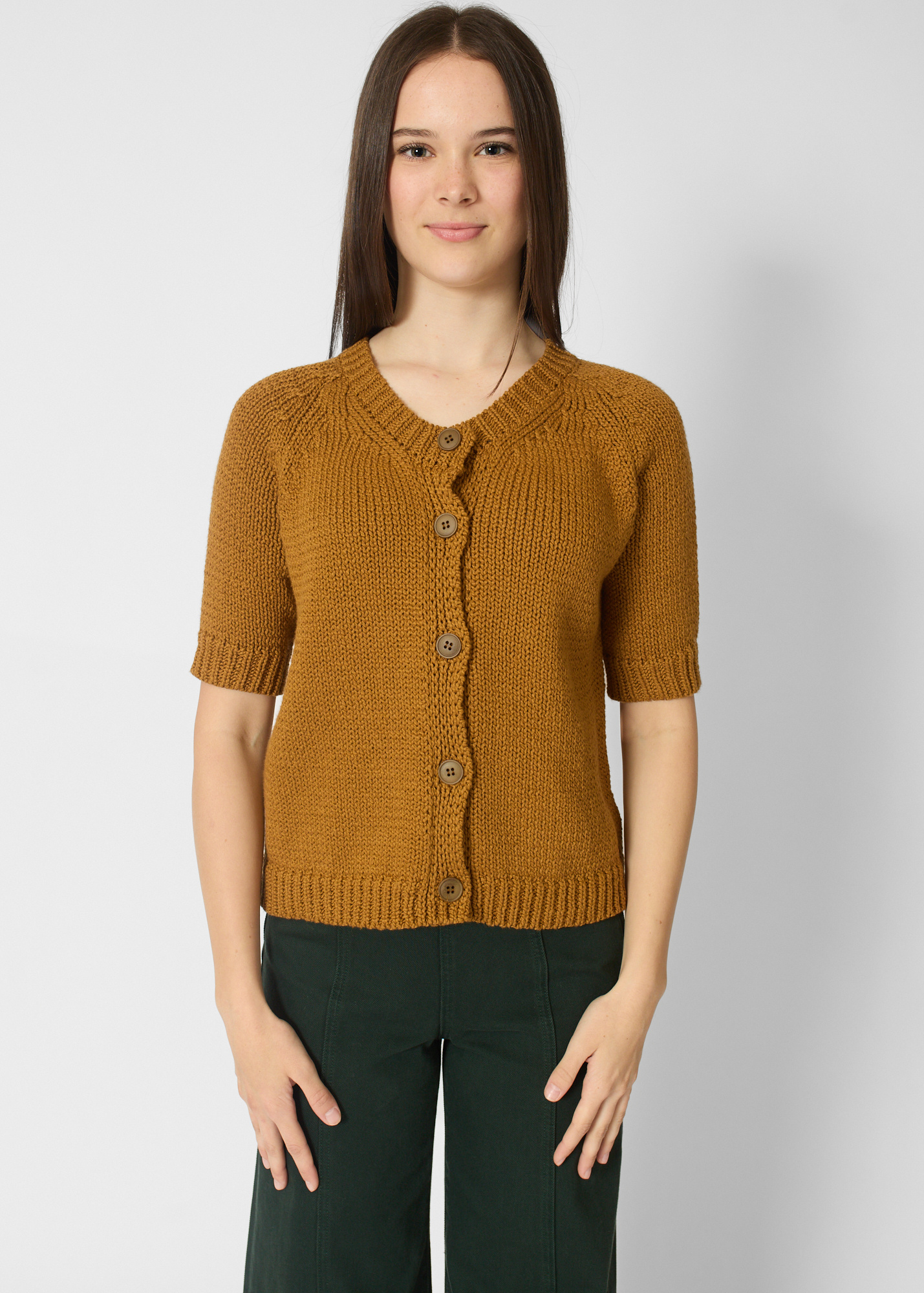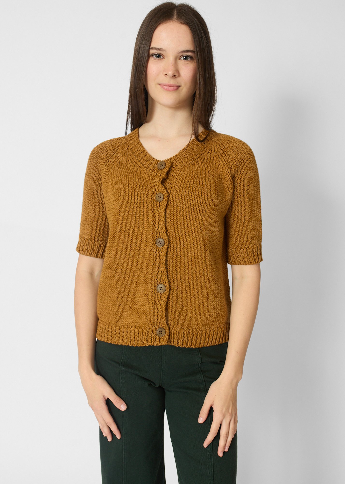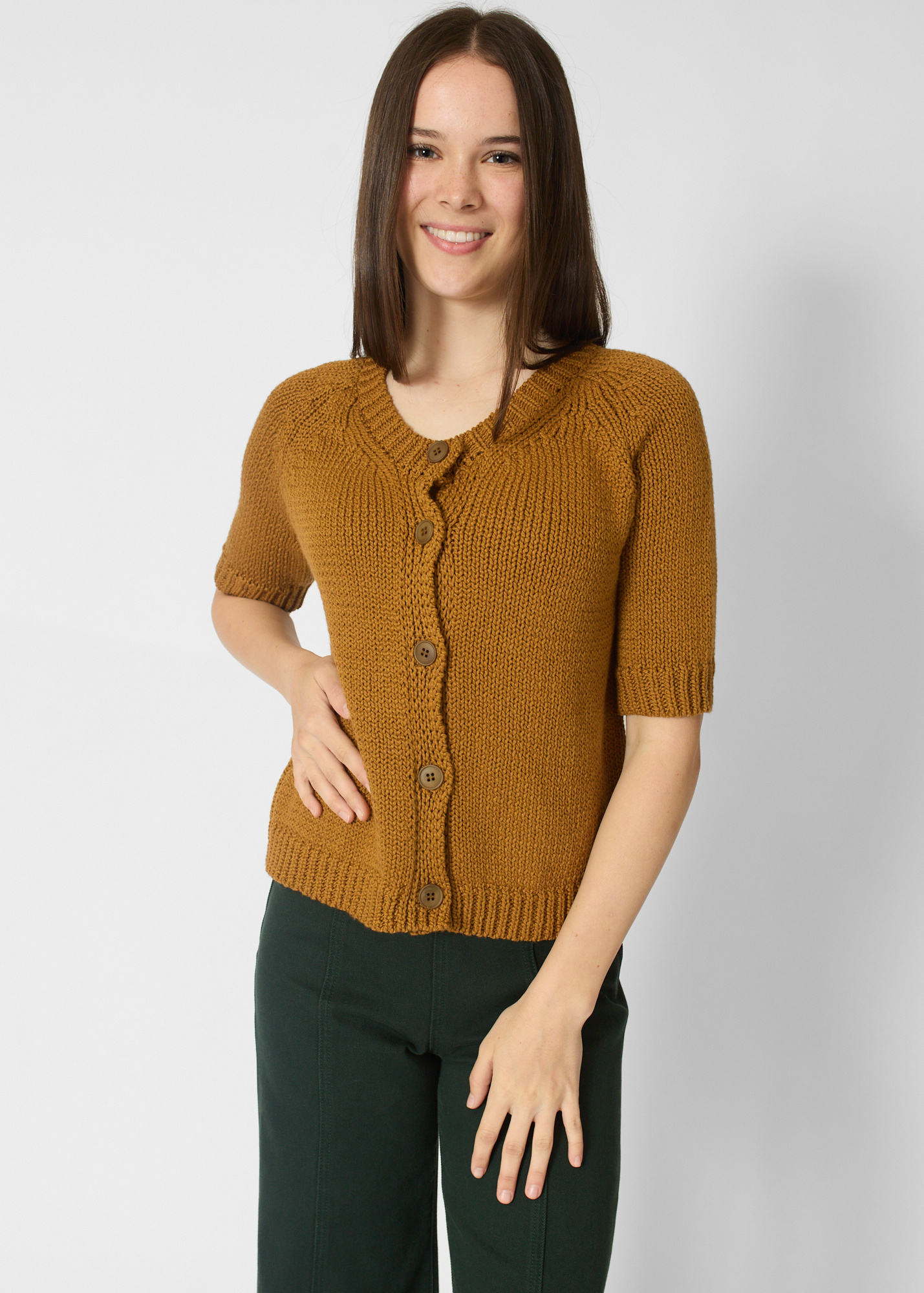 Round neck button cardigan with short sleeves