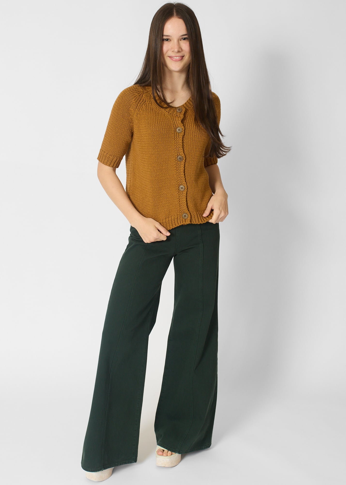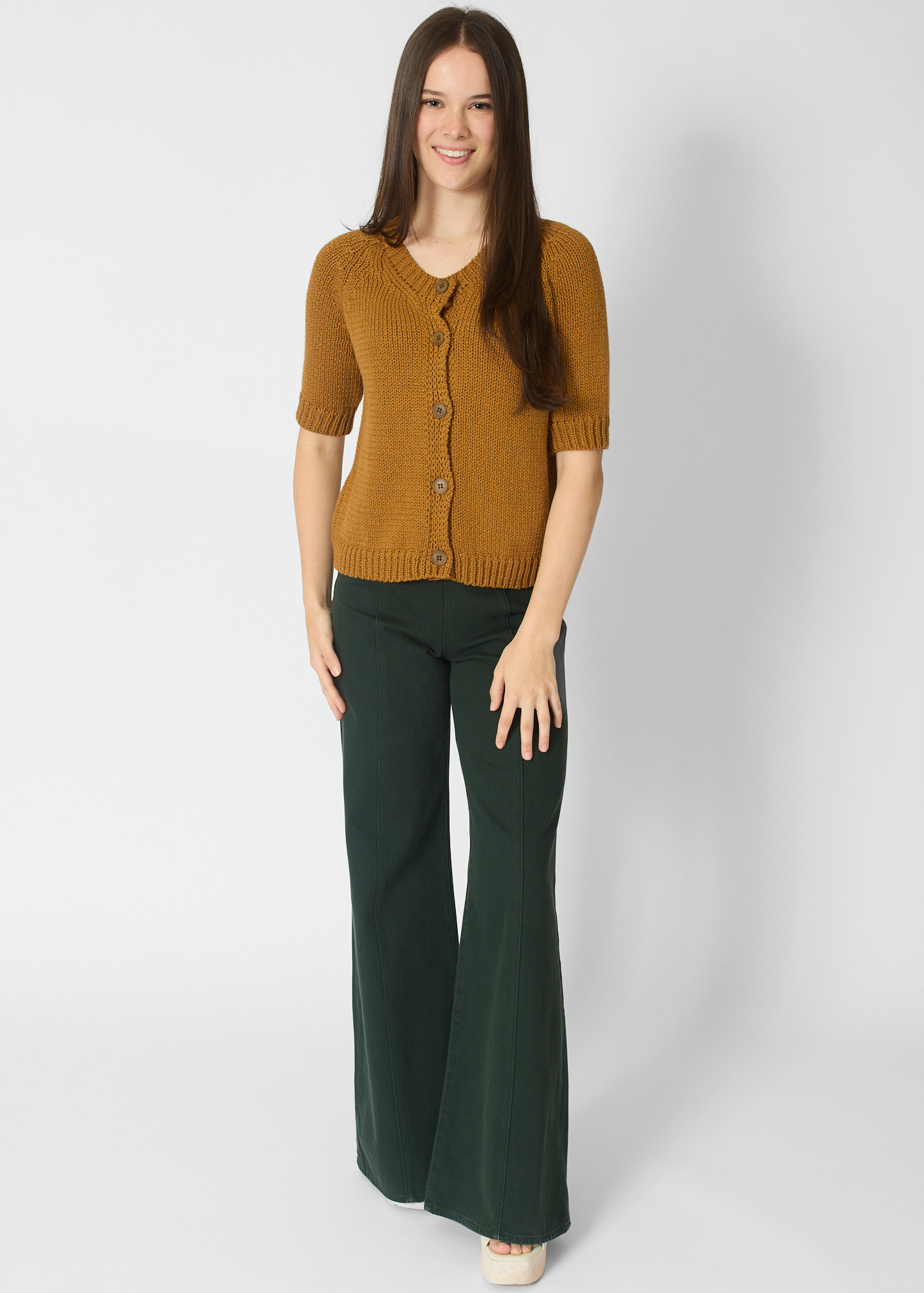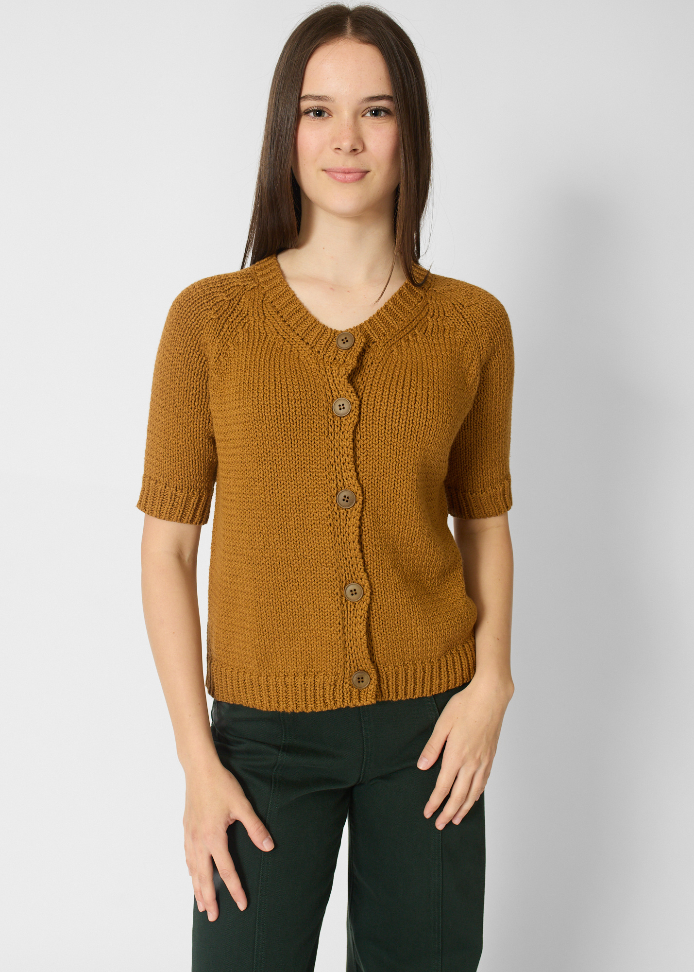 Round neck button cardigan with short sleeves
