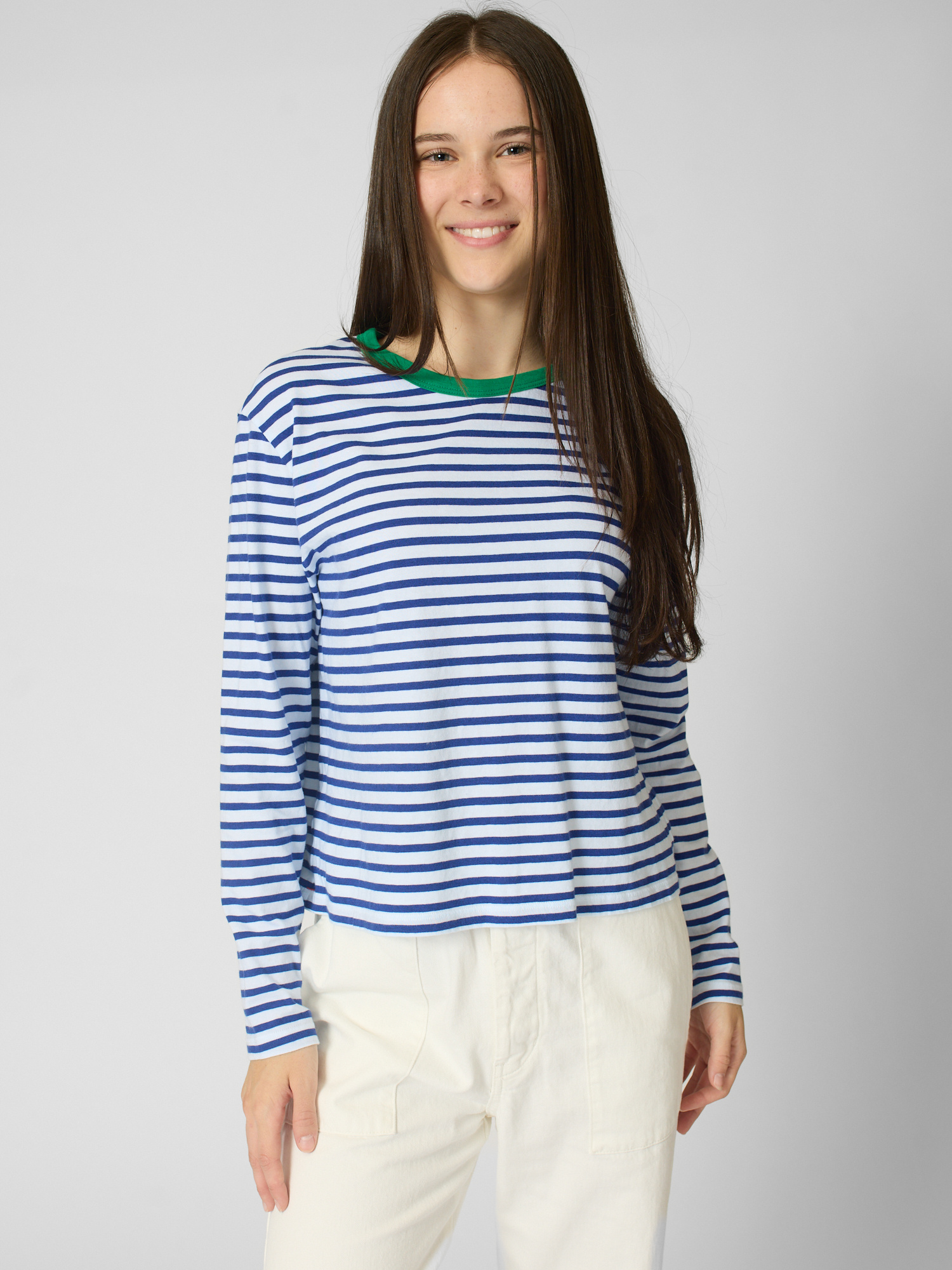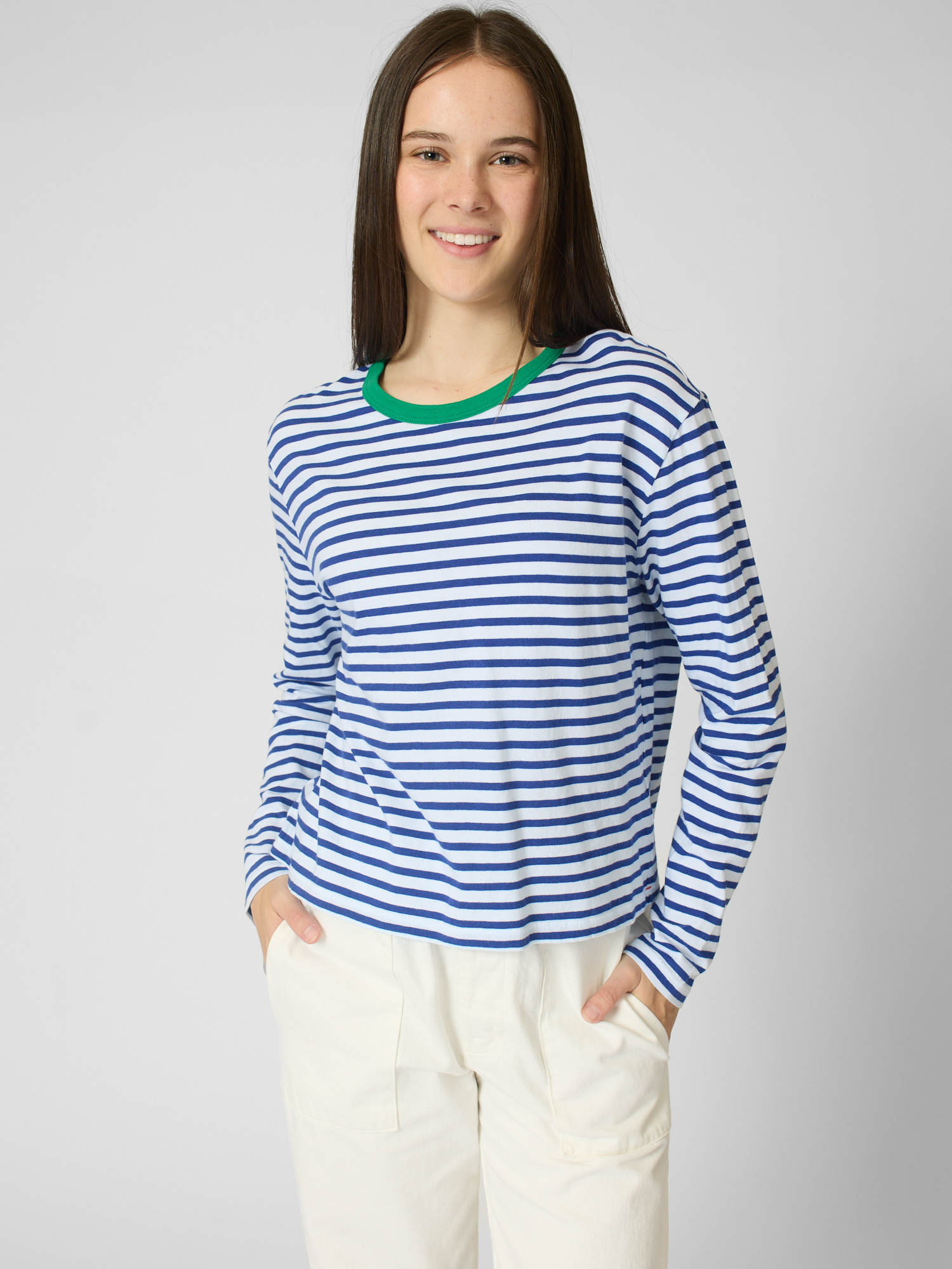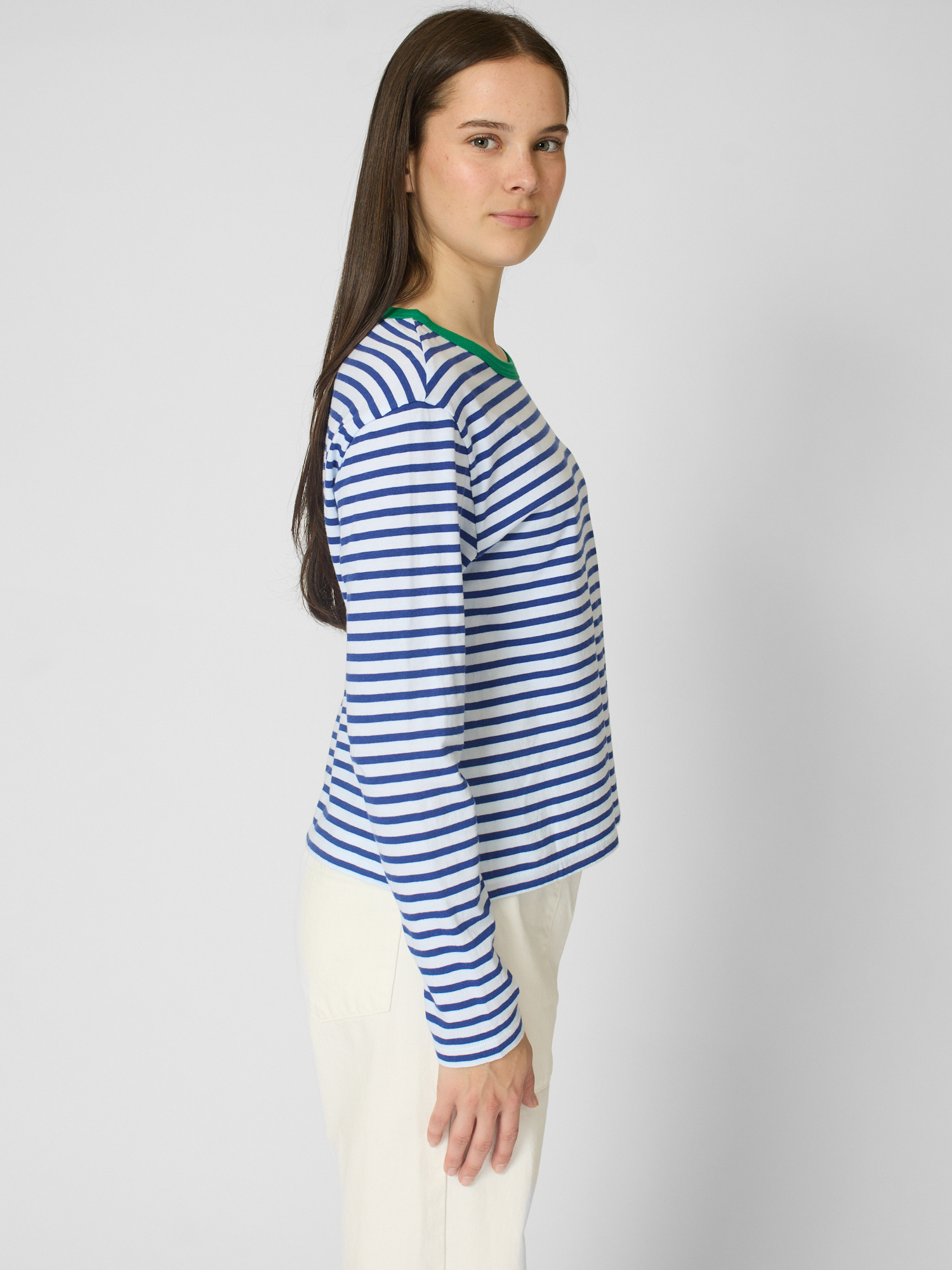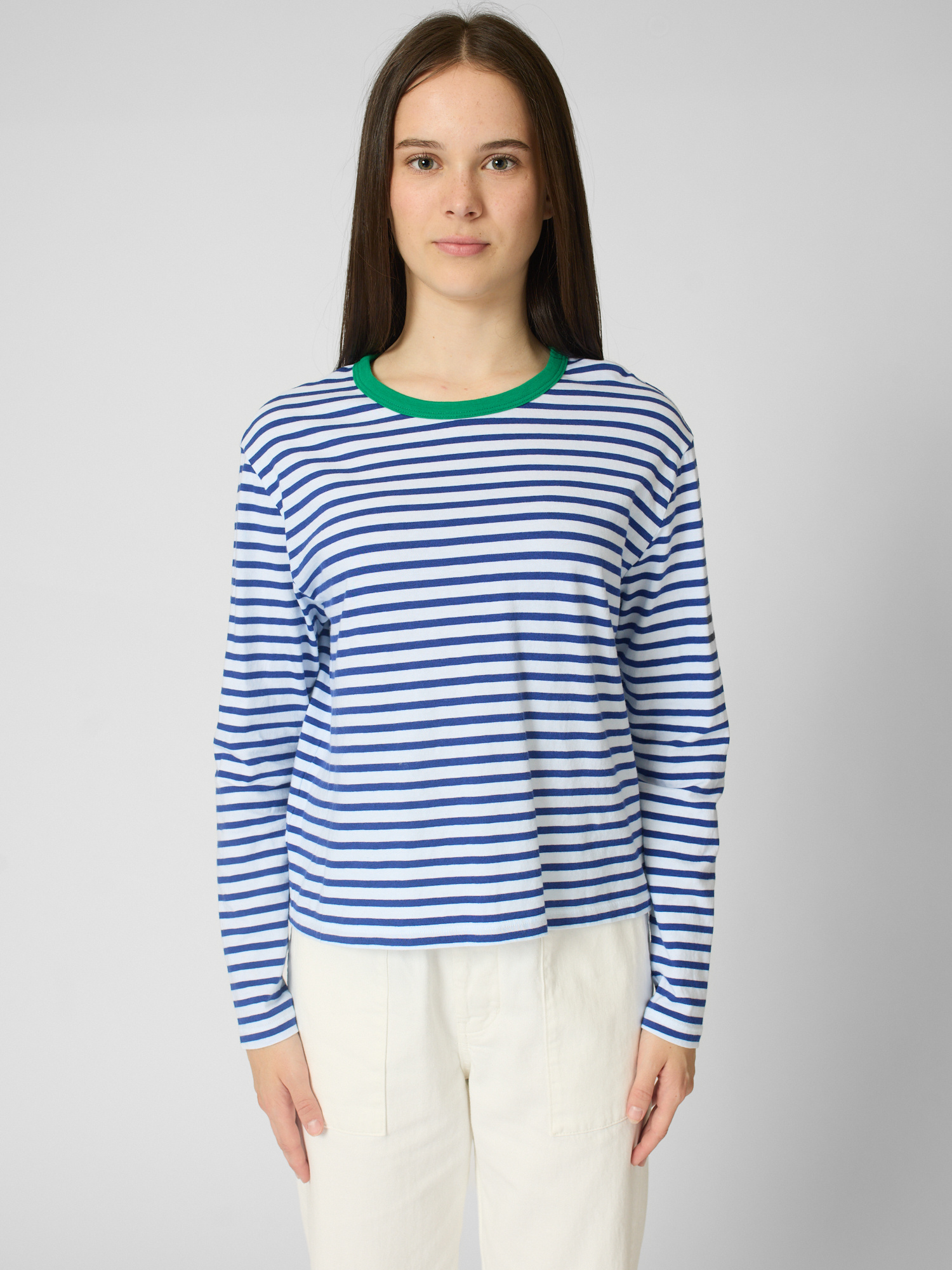 Easy long sleeve tee with slightly dropped shoulders and a boxy fit.