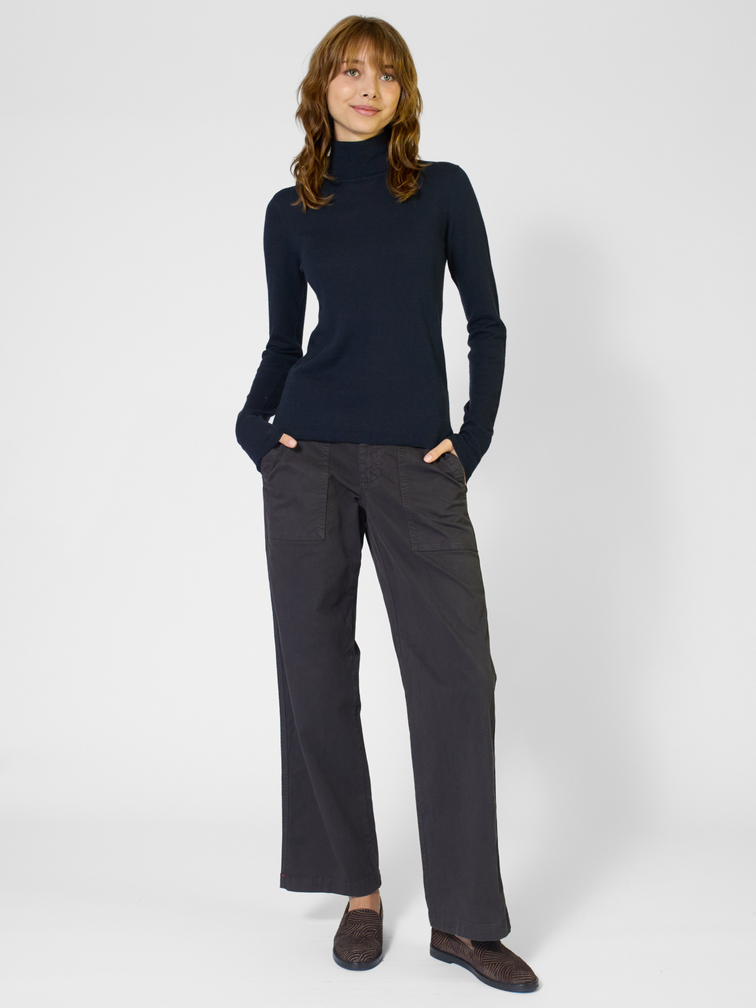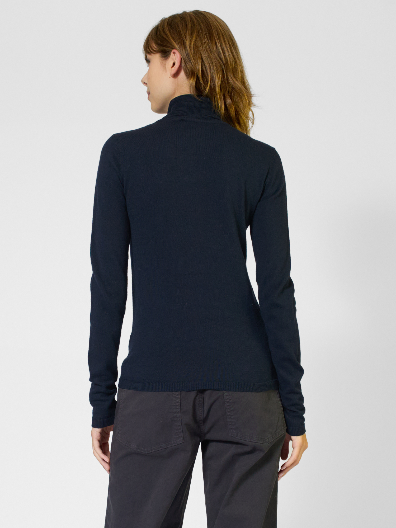 The cotton-cashmere blend pullover features a ribbed turtleneck, cuffs, and hem.